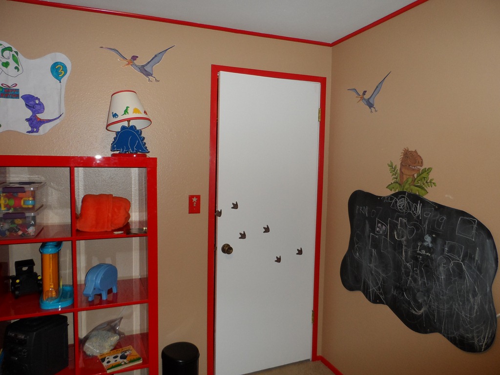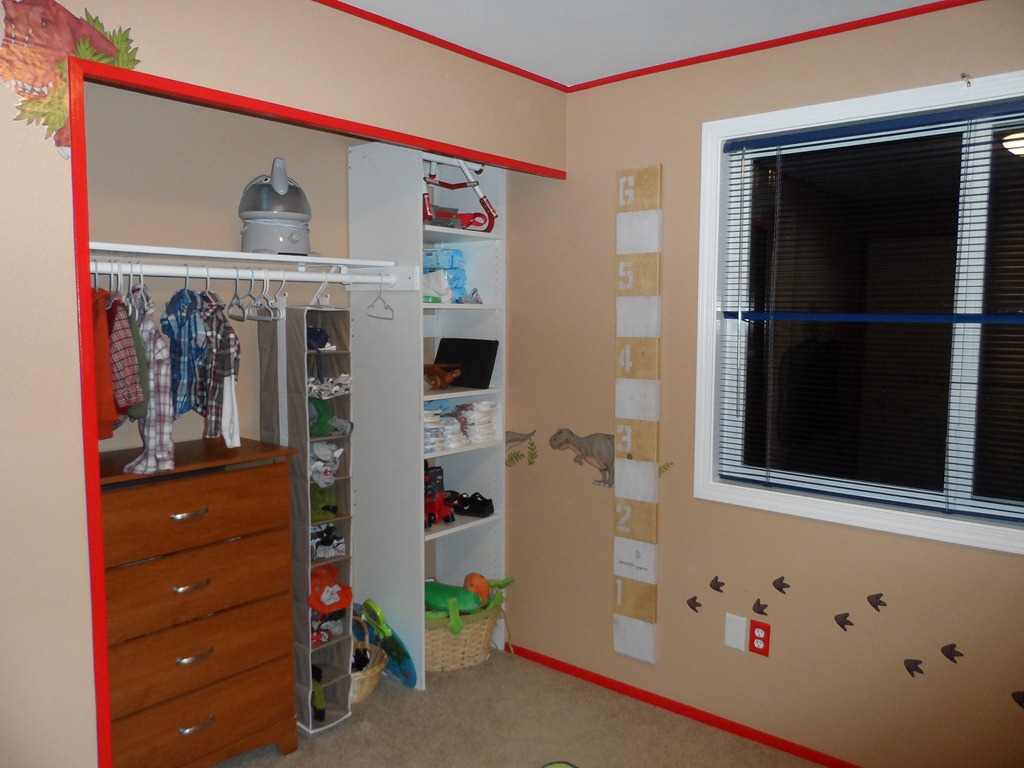 I mentioned before that I thought I should add red trim around the closet to complete the room. Here’s the before: