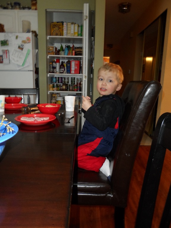 Such hard play deserves a special breakfast—cheerio’s, ham, and hot chocolate.
