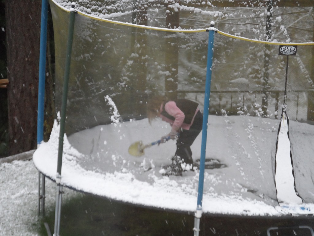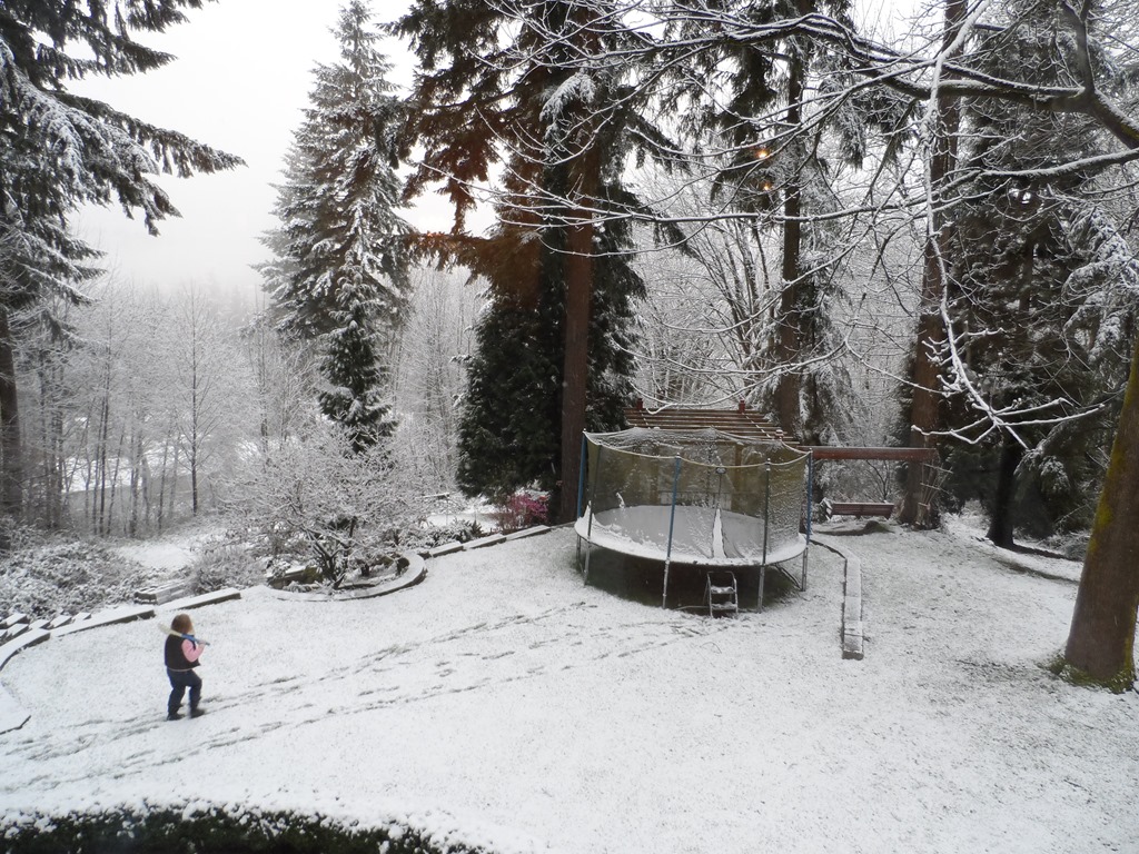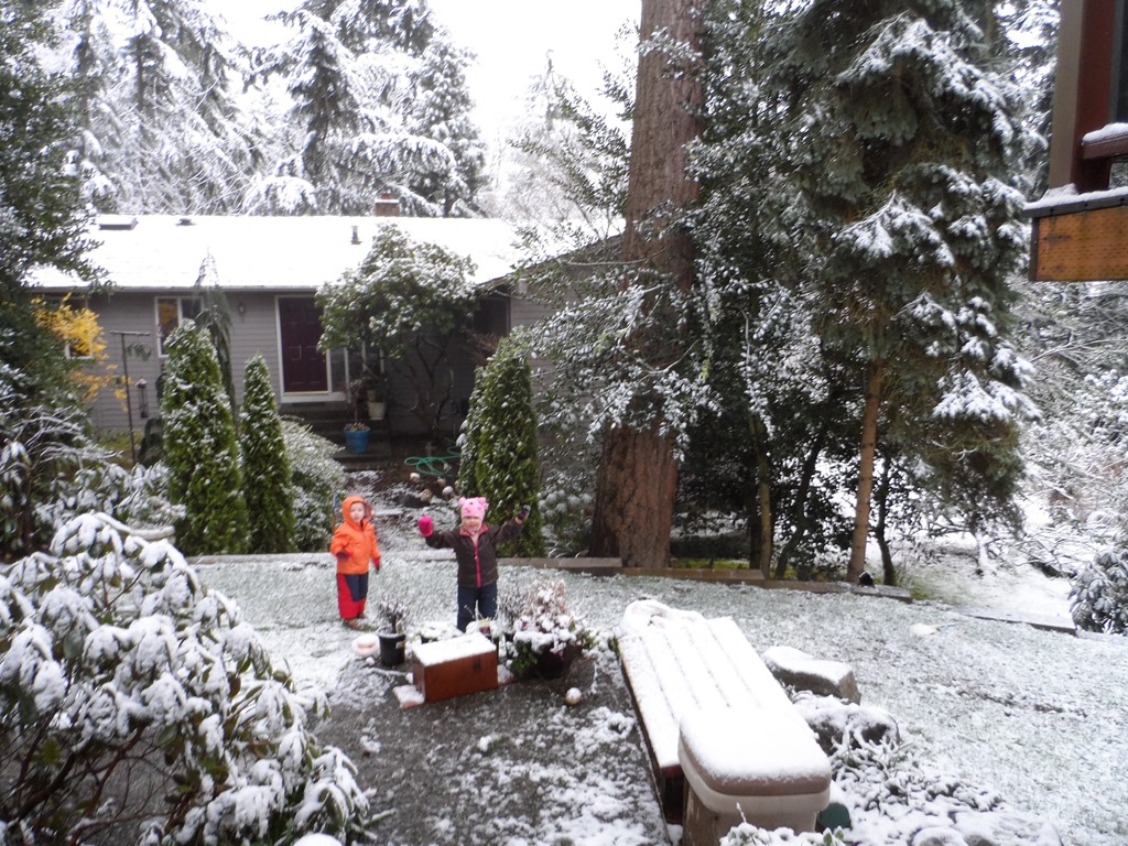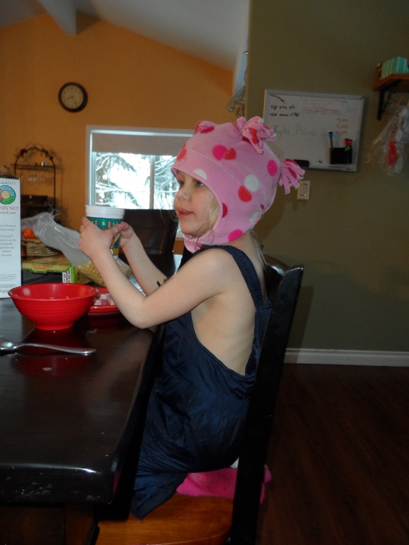 After bemoaning yesterday that it was spring and we hadn’t had any snow this year, the kids got to put on their snowsuits over their pajamas (or in Piper’s case, instead of pj’s) this morning before school.