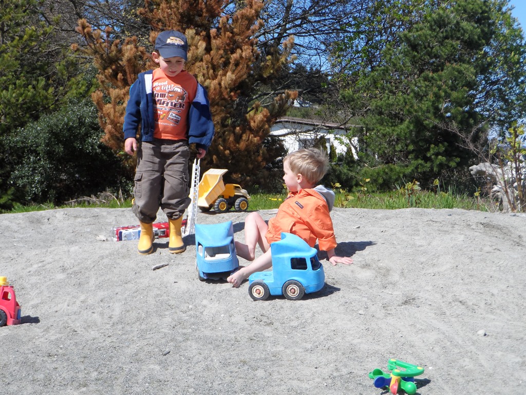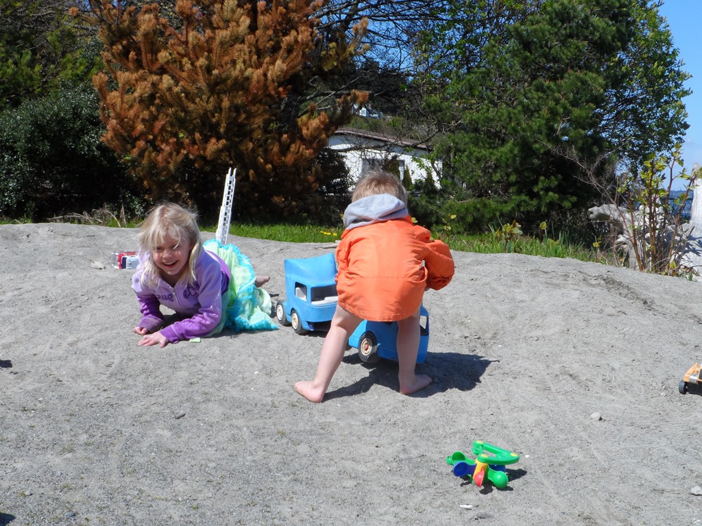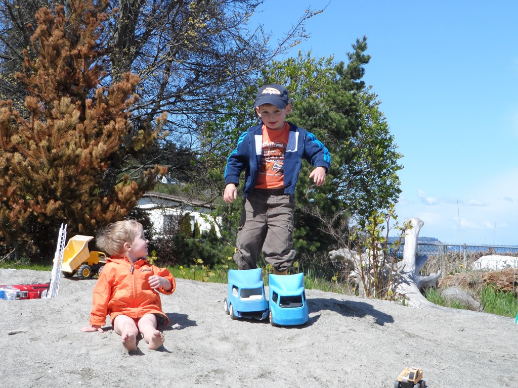 Tyler didn’t have to convince Wesley too much of the Greatness of Construction Trucks at the beach.