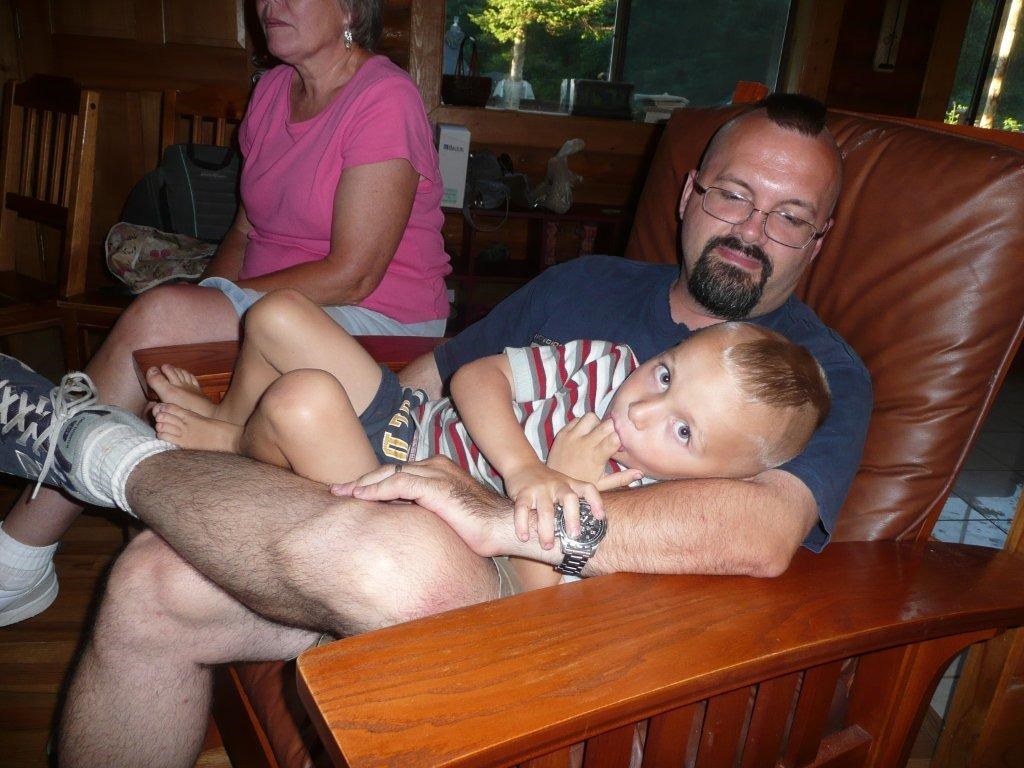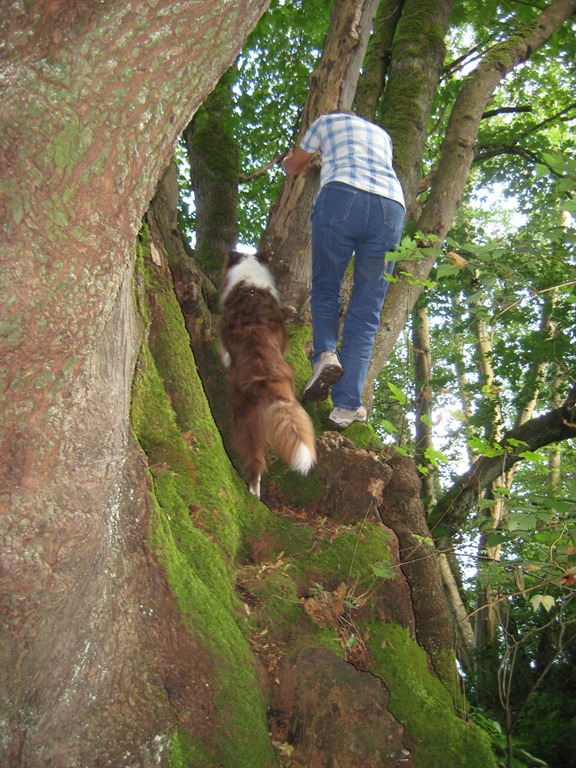 Before returning to the cabin, climb a tree for the heck of it. This particular tree all but has stairs built right into it. My mother’s (my AWESOME MOTHER!) climb would be slightly more impressive if the dog hadn’t climbed up right after her.