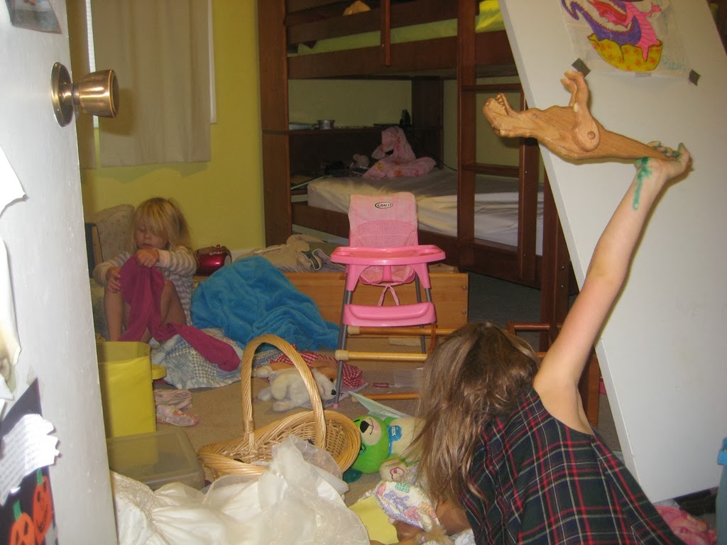 I was away most of the day helping a friend with a house project. It was a decent day and Dwayne wanted to finish up the building season by getting a last section done on his walls and cleaning up for the winter. This meant open season for the kids. We both knew the house would be a disaster whether or not Dwayne worked outside, so he might as well make progress.