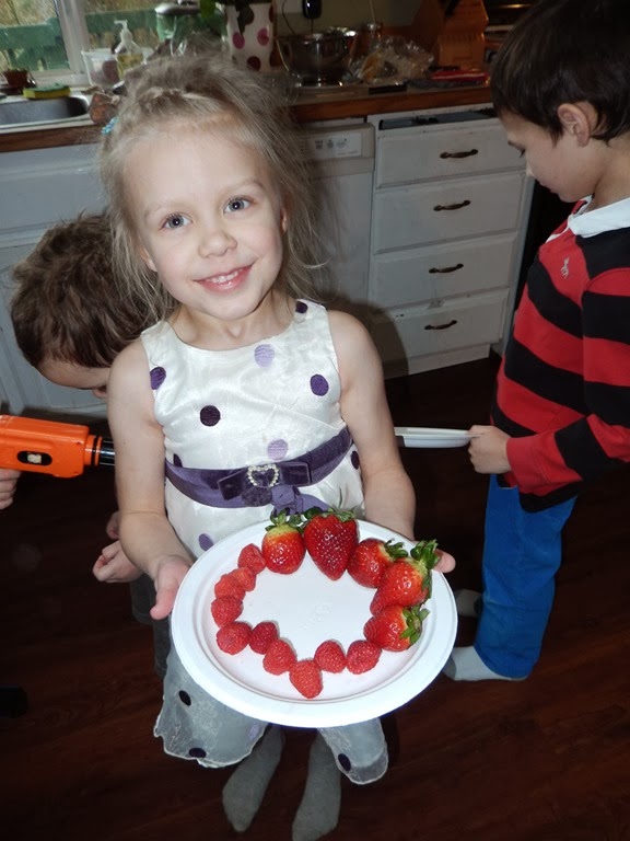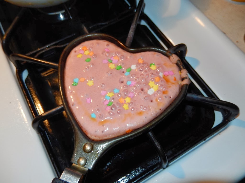 My kids really want Valentine’s to be a special day (I give credit–blame?– to Dwayne for always making this a great day for the kids). We start off the day with pink heart pancakes with sprinkles.