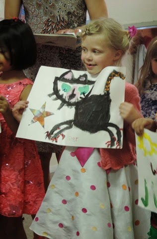 The school year winds down, but since I have three children if 5 different schools (which made Valentine’s Day a bear), there were recitals in the preschools as well as the elementary. But the Montessori is the most fun. Since Piper and Wes are both in this afternoon program, I really got to see the difference between the youngest and oldest students in this multi-age classroom. The class writes a play together and different children recite poems and sing songs. Piper, as one of four graduating, Kindergartners, got a little extra “show off” time.