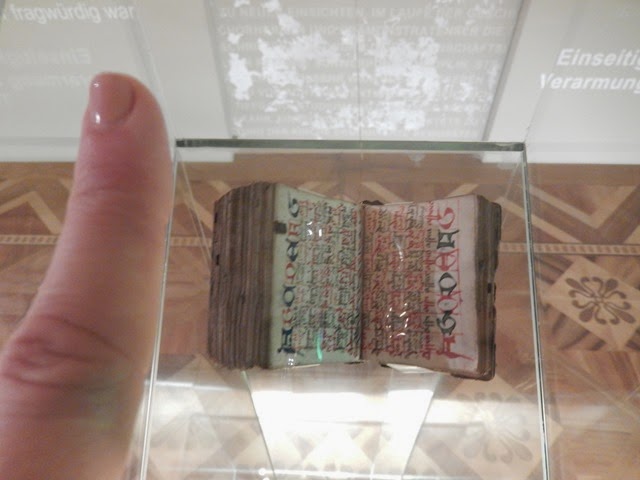 I’m not sure what I was most interested in, but the books and scrolls drew me in. This is a minute prayer book for abbey monks. (Kyla and Piper, “minute” means “very small”.)
