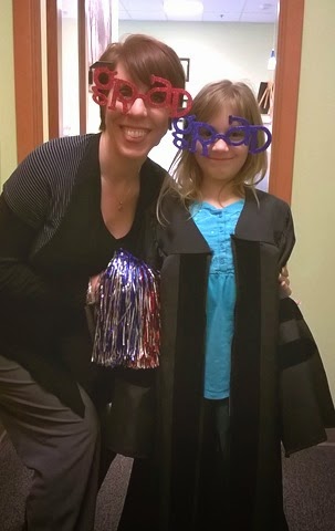 After a year of Vision Therapy, Kyla graduated today! Technically, I don’t think she would have graduated if I hadn’t already stated we wouldn’t continue another unit (12 week session), but she has mastered all the skills except horizontal tracking, which seems to be a dyslexia problem, not a vision problem. Her eyes getting tired really easily, too, but we might as well wear them out reading than doing eye exercises. Regardless, I’m really proud of Kyla. The girl has an impressive work ethic and, with her fantastic therapist, gets full credit for achieving this one! (I’ll be taking the credit for any improvement Wesley shows—at age 5, he’s not exactly a self-starter for things he should be doing.)