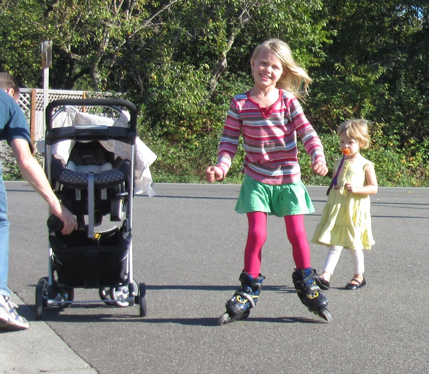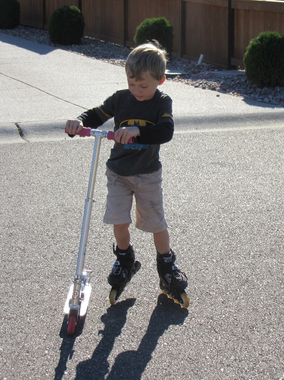 But it was a gorgeous day, and I had filled the car with wheels of all sorts. Wesley tried riding the scooter with his roller blades.
