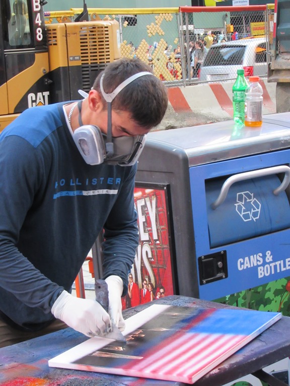 The crowds got noticeable, well, crowdier as we got closer to Times Square. More people meant more creativity, and one guy used spray paint and a scraper to make amazing art. It took him about 5 minutes.