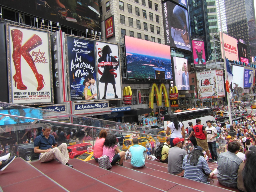 Times Square would make Kyla spontaneously combust. Daddy’s head nearly exploded, and neither of us wanted to linger. Times Square is the part of NYC where every surface seems to be lit up with flashing lights, ginormous screens, fast moving videos and 100 foot tall ads. And one or two people. Or more.