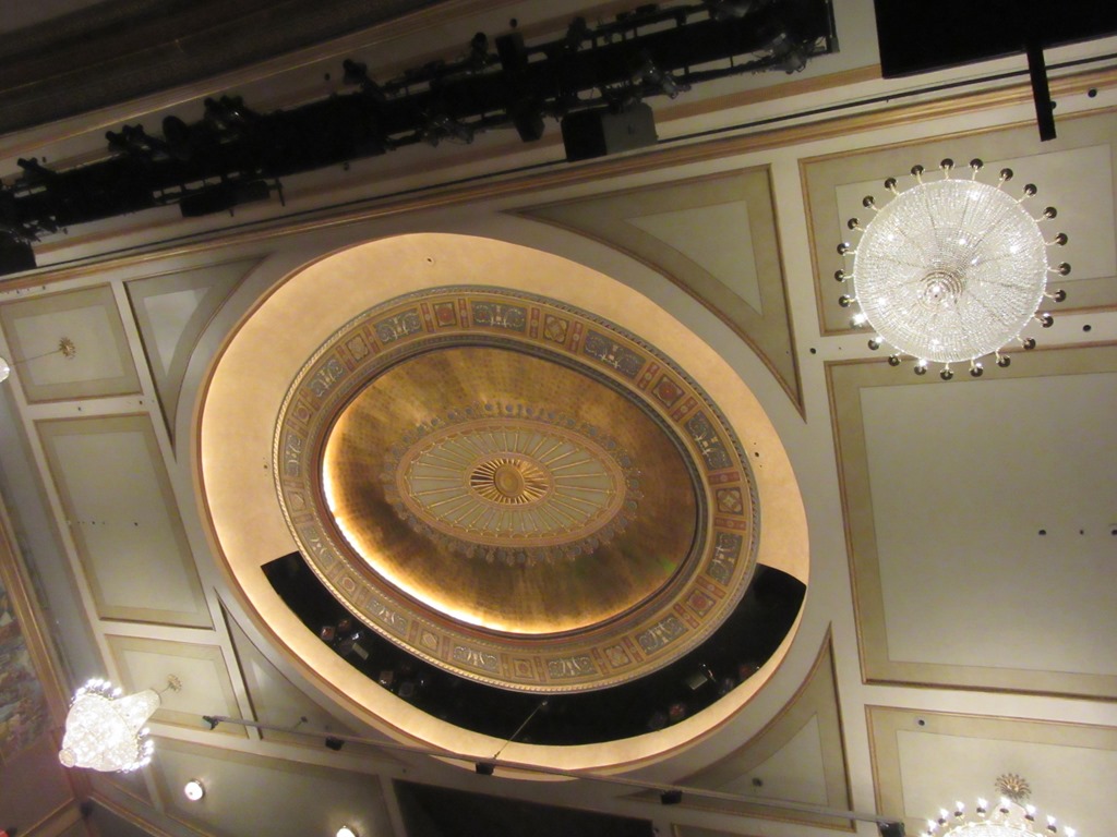 You’d be amazed at the theater—it has splendid chandeliers, velvet curtains, painted ceilings and gilded decorations, none of what I captured well on the camera.