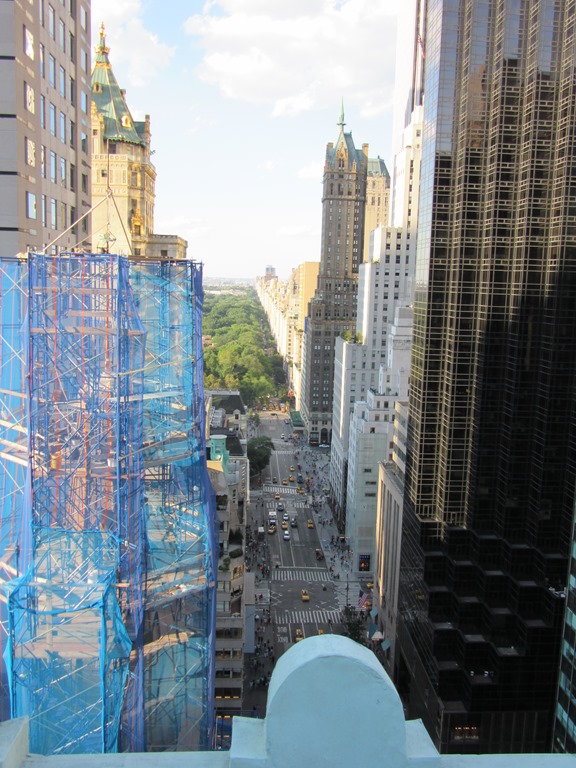 From the hotel’s rooftop, we can see Central Park. Can you spot all the green a few blocks down? (The blue netting is surrounding the reconstruction of a church next door.)