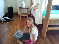 We certainly spent time in the family pool and getting sand down our suits while boogie-boarding in the ocean, but we also learned quickly how to enjoy down time in our own place. We bought what we needed to make PB&Honey sandwiches, cut up one of the many pineapples, papayas, or melons we had bought earlier, and had lunch together out on the patio. Wesley and Piper spent a lot of time in the bitty pool, while Kyla alternated between plunging and audiobooks. I read and read, and Dwayne snoozed and read.