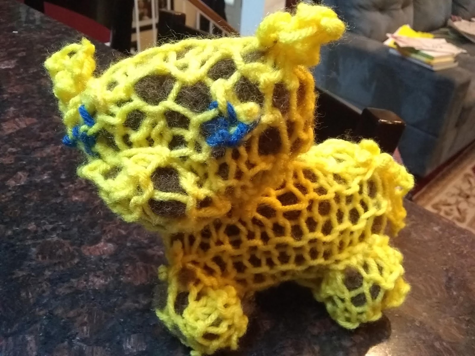 Piper Crafts Again! March 20, 2019Denise Oh, that darling Piper. She wanted to make cousin Taryn a birthday present, and so finger-knitted this cheetah, cleverly using yellow yard and brown stuffing for authentic coloring. I love it’s sassy tail and blue eyes. Share this: Click to share on X (Opens in new window) X Click to share on Facebook (Opens in new window) Facebook Like Loading... Related