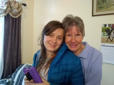 The kids and I visited Mom and Janet today, and we measured Kyla’s height against Grandma’s in the old OMG-How-Tall-Is-She-Getting!?! game. I took a picture, just so they could see how close they are, but I accidently caught very lovely, and loving, pictures of two of my favorite women.