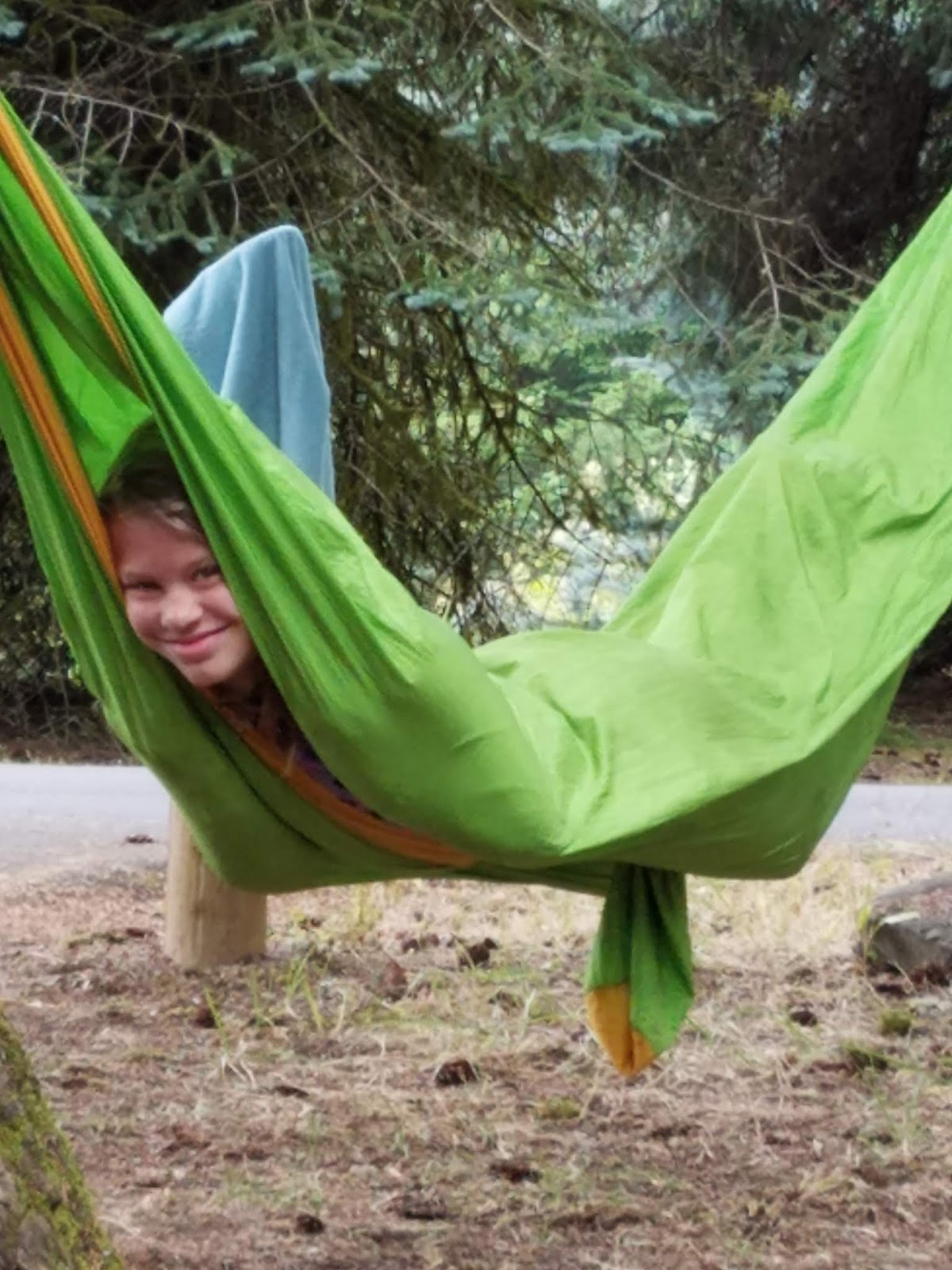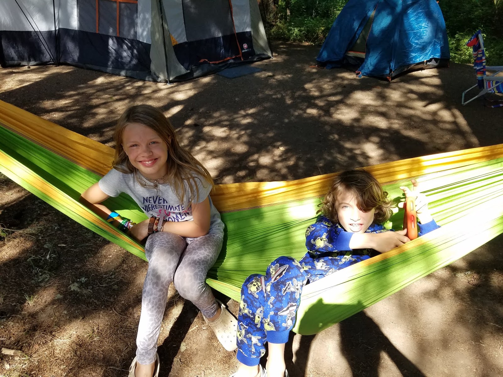 Because Kyla needed to be droppped off by 9 and picked up by 3pm in Eagle Creek (aka Middle of Nowhere But Pretty), OR, I searched for a convenient place for us to stay that week. We found a pretty campground less than 10 minutes away from camp. We only stayed for 3 nights, but if I had been able to alter our hotel reservations, I would have happily done a 4th night. I was too busy reading books (currently evangelizing Sherry Thomas’s Lady Sherlock series– started first book at 10pm and finished at 3 in the morning!) to take many pictures, but the kids were happy to *hang* out all day at camp, too.😁