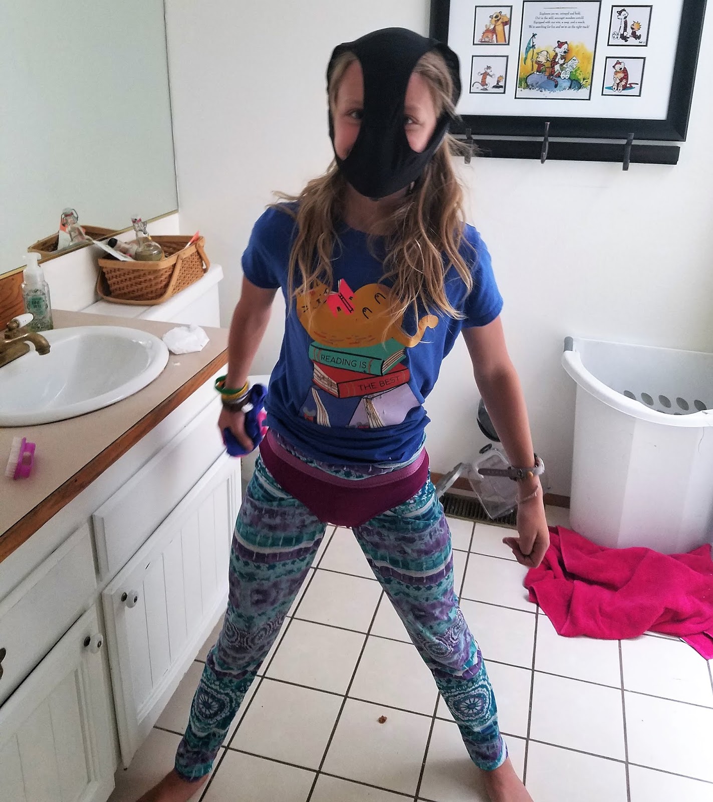 As I handed out underwear, I had done some reminiscing about how the kids used to like putting on unders as a super hero masks. Piper obliged.