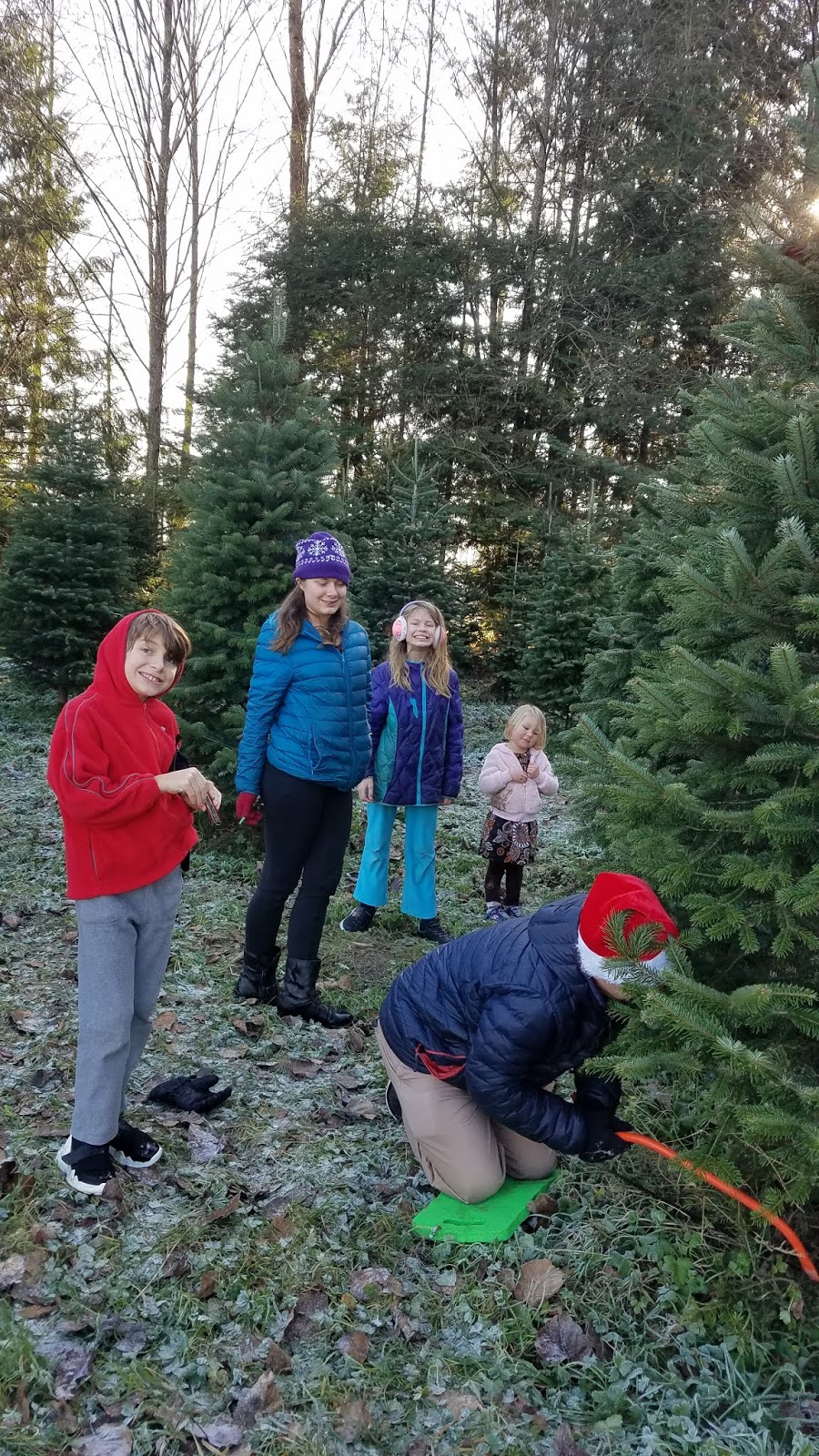 But we had extra special guests with us this time. Brian and Sandi met us at the first tree farm, and we made an outing of it, even if we didn’t find a tall enough tree at this one.