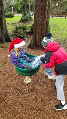 But they couldn’t help themselves at the spin toy and Kyla found a very knobby tree to tackle.