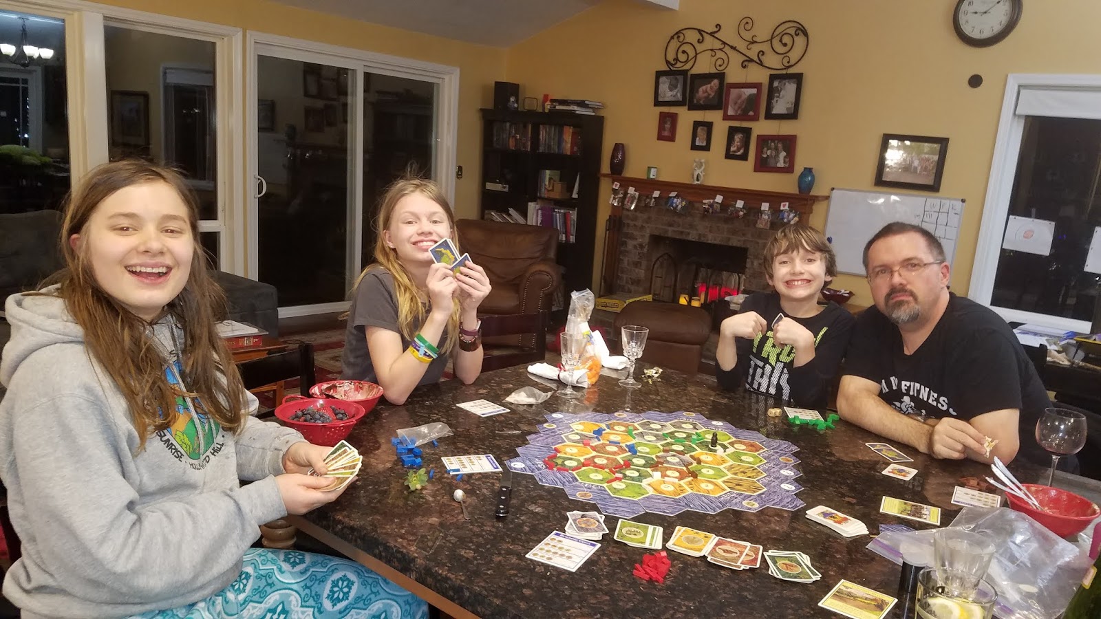 Instead of doing the standby movie night, or even Uno or cribbage, I wanted play a board game that we’d all enjoy. Settlers of Catan isn’t particularly complicated, but I haven’t played it since BC (before children), and Wes doesn’t always “get” things before Kyla is bored and ready to go back to her book, though he is the kid who most likes playing games. I usually don’t get to reflect and see all the things that went right, but this night was so perfect, I need to record for posterity.