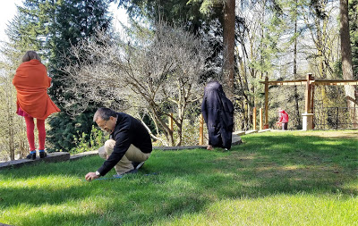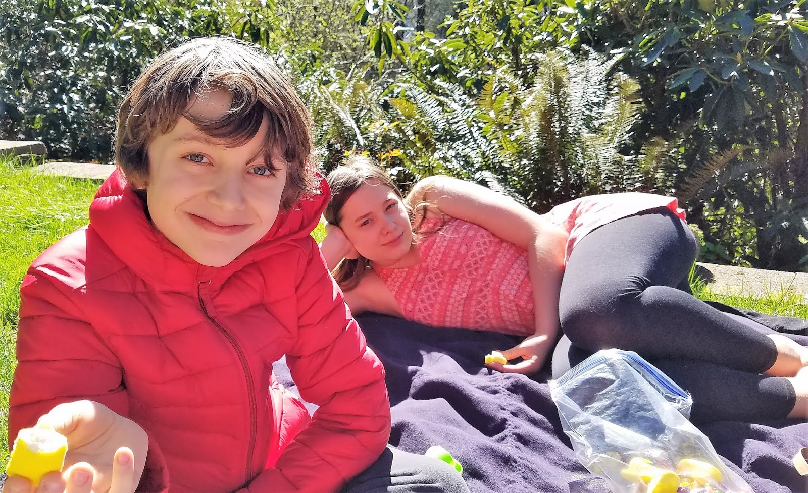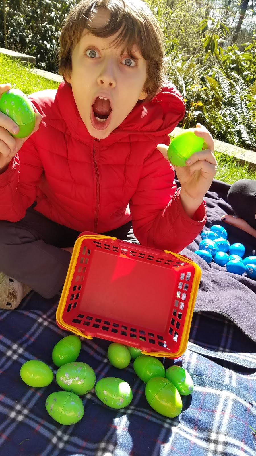 The kids surprised us with another egg hunt. They had found the camouflaged eggs–ones made to look like grass, rocks, etc– and filled them will little drawings and love notes and ordered us to find them.