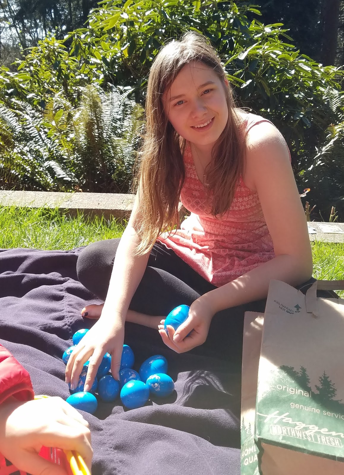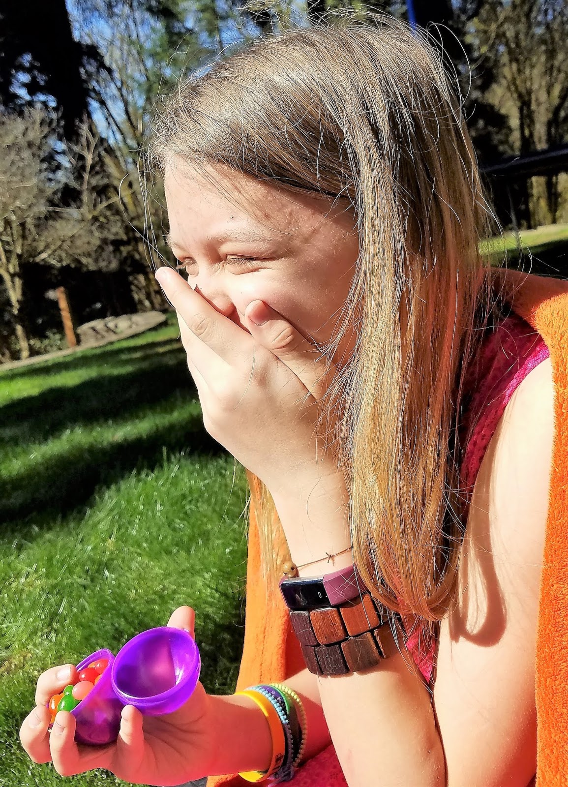 Then we turned the tables, brought out a dose of the EEB, and hid the camo eggs so well that they were hunting them while we made (“made”, thanks Costco!) our Easter dinner. Salmon and lamb, veggies, and no deviled eggs. Since the kids don’t eat hardboiled eggs, we let our first Lent go by without dyeing eggs, and maybe I’m hardboiled myself, but I didn’t particularly miss (mess!) it.