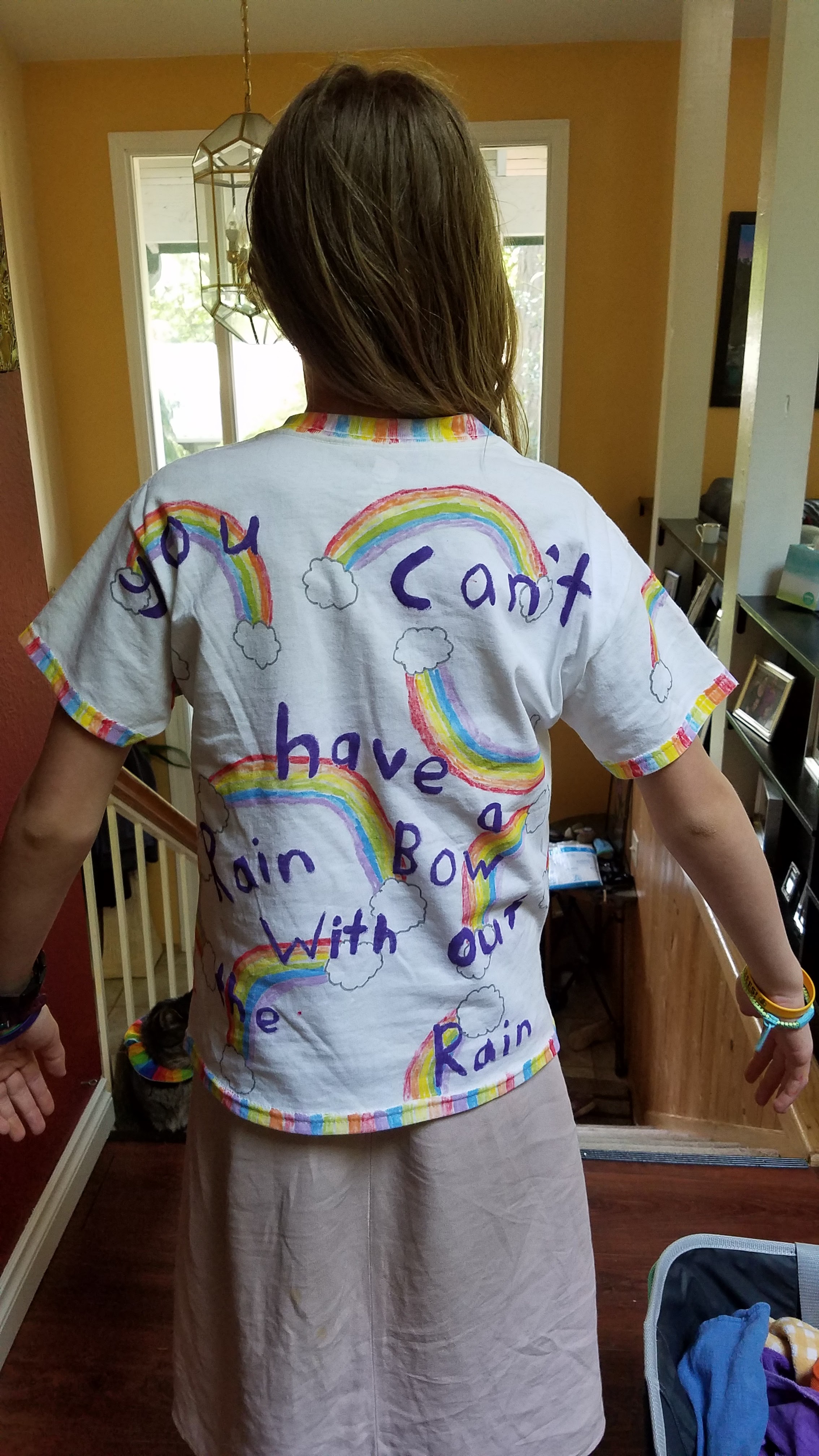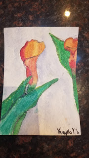The mystery of painting detritus left on the deck the night before was solved when Kyla gave me a watercolor of the calla lilies I had just planted days before (and therefore, were still looking as nice as they had in the garden section at McLendons). Isn’t it lovely?
