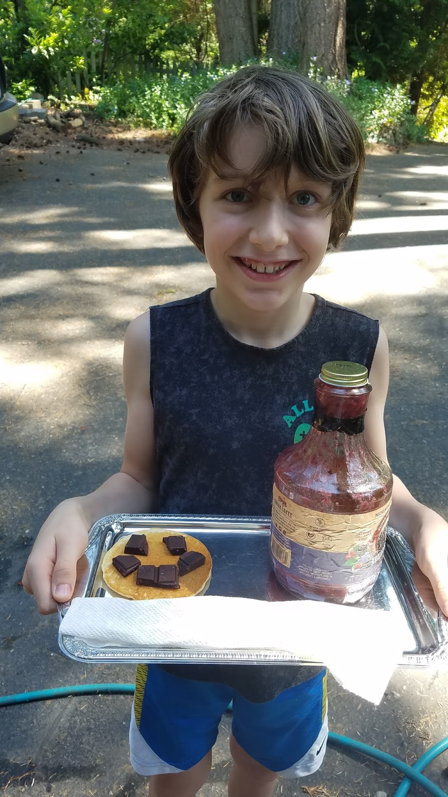 I had settled into a short afternoon of outdoor puttering before my parents came over for an early dinner when Wes came out with my second breakfast: