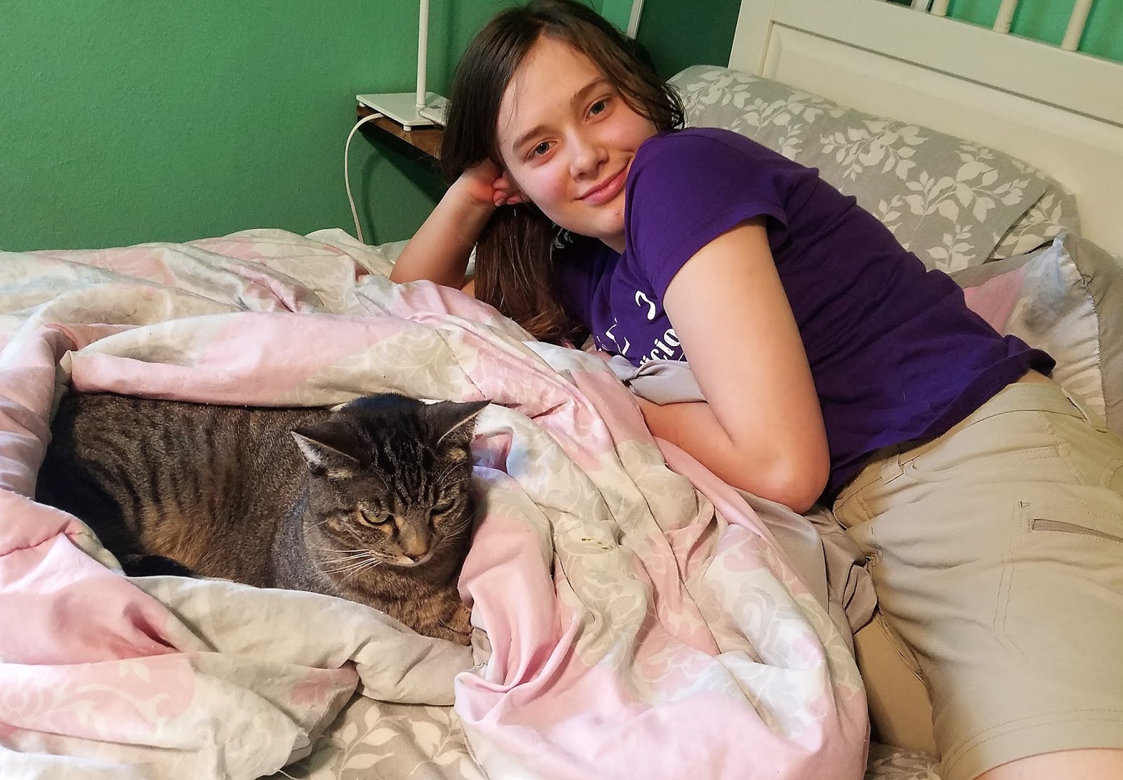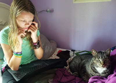 In another room, Piper and Timmy “do homework” together. (Piper has finally caught up with a month of homework. Timmy is going to fail middle school if he maintains these study habits.)