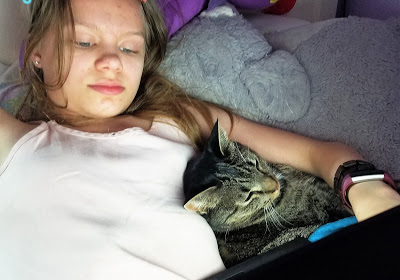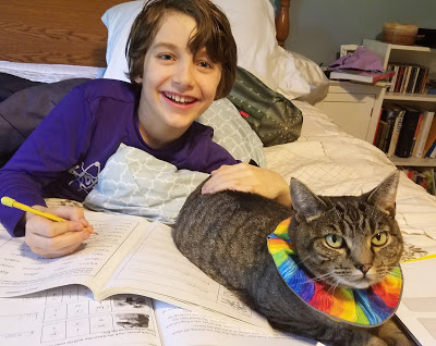 Of all the creatures in this household, I think the cats like homeschooling best. Timmy Whitefoot and Rosie Grayfoot both enjoy having their people home with them all day.