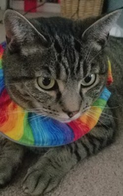 So the cats to mind, but oh! Piper was mad. She protested the horrid collars, and marched in solidarity, with herself. Her first collar was made of paper, and was quite uncomfortable, which of course, is how she assumed the cats felt.