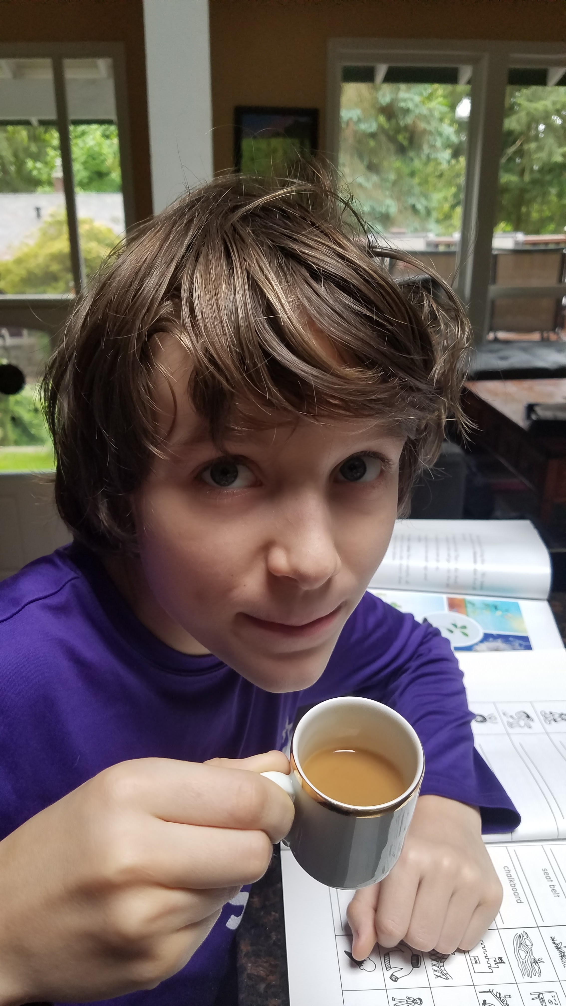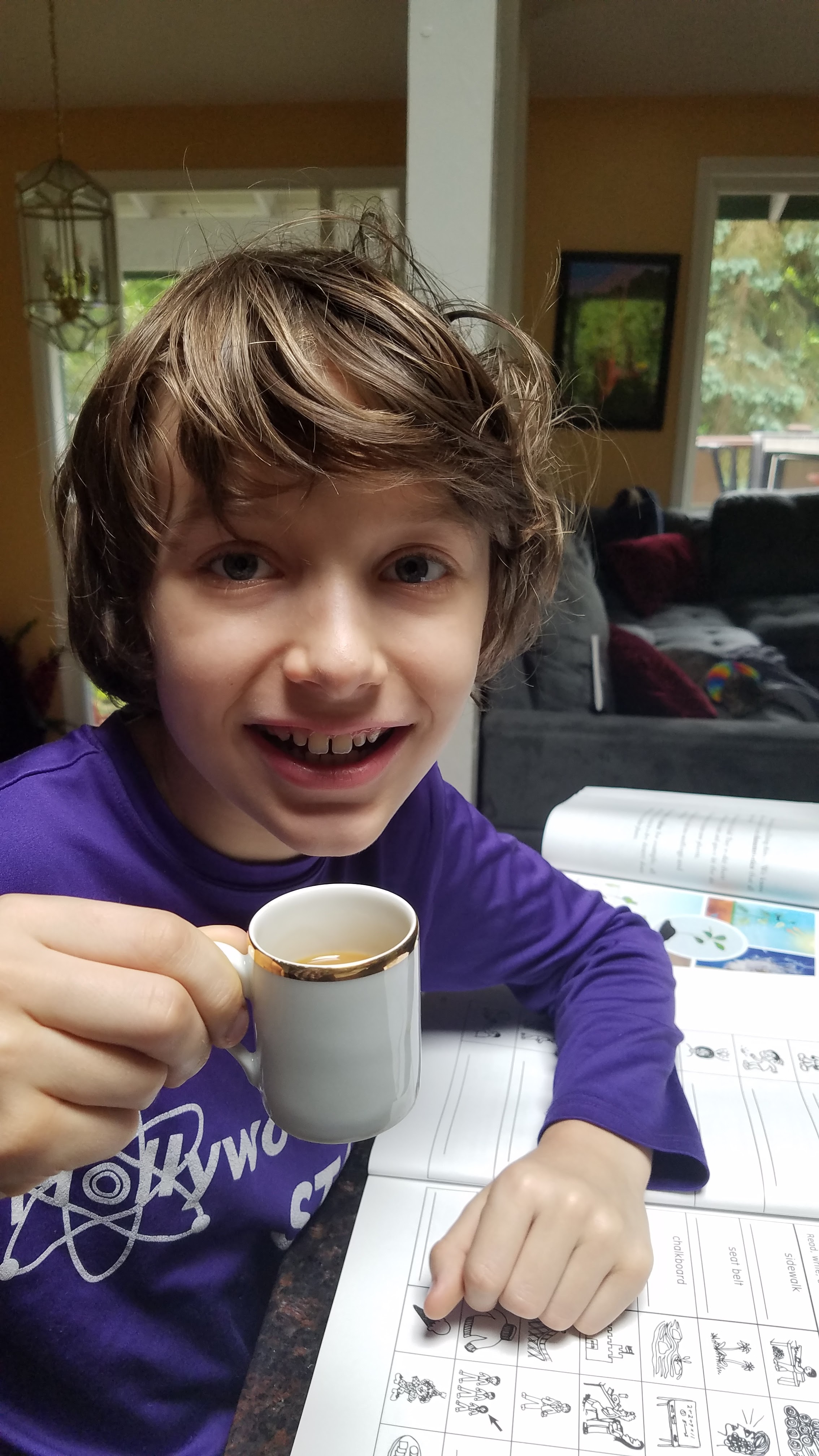 Now Wes gets his special “sipsies” each time Dwayne makes himself a cup during the workday. He’ll even get up to make Dwayne’s first cup in the morning. Fortunately, sometimes Wes will throw me a bone and make me a cup of peppermint tea.