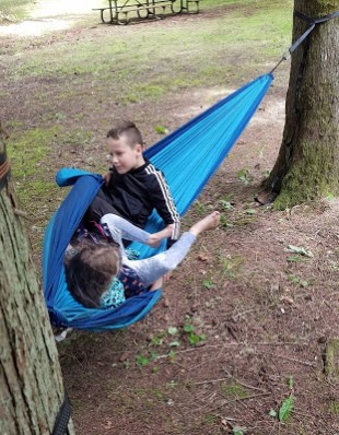 Jarrod did some heavy lifting this weekend, pushing the kids on the merry-go-round and hours underdogging the hammocks.