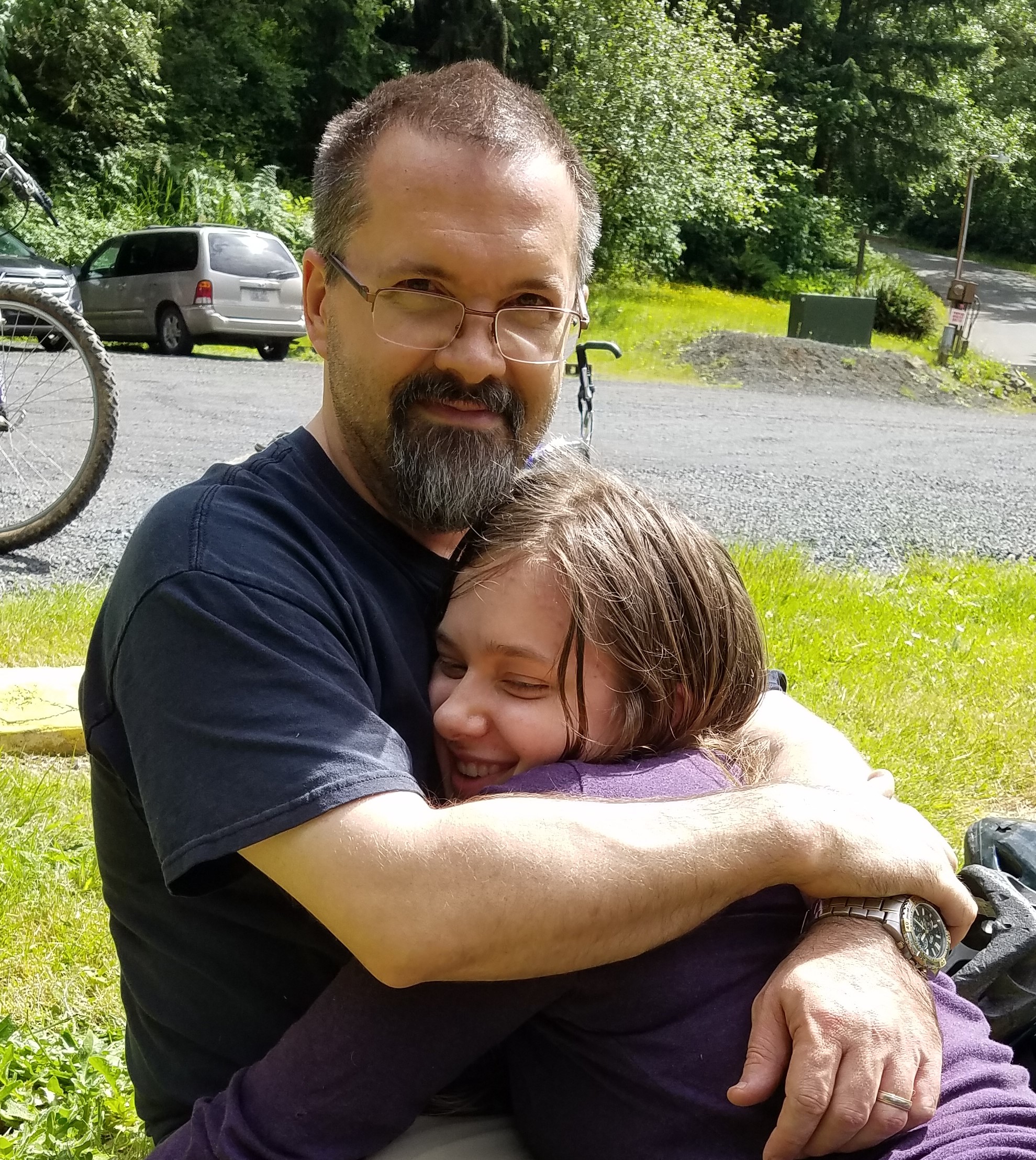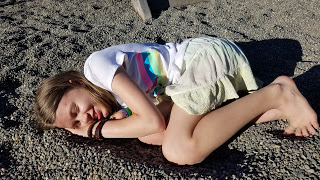 The tablets were still at home, and both girls found themselves engrossed in reading, while Wes found himself engrossed in snuggling with on Kyla after a family bike ride. Typical. 🙄