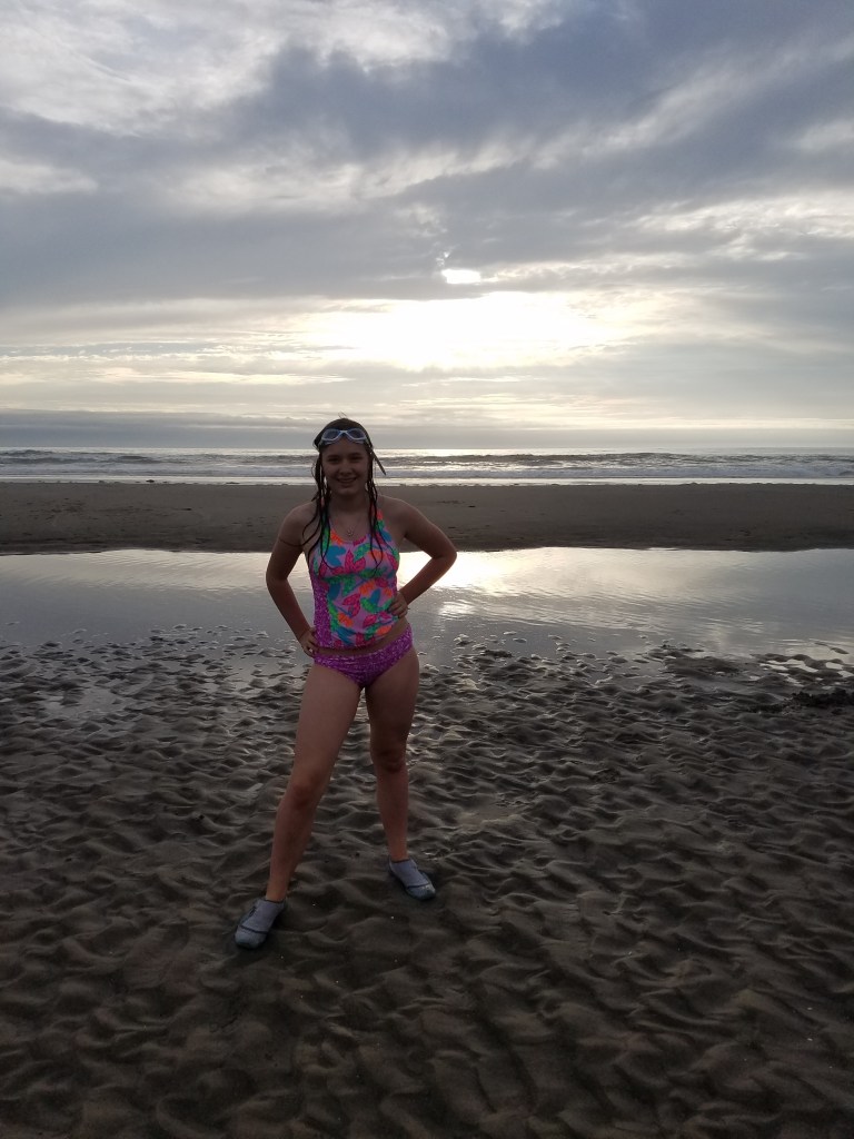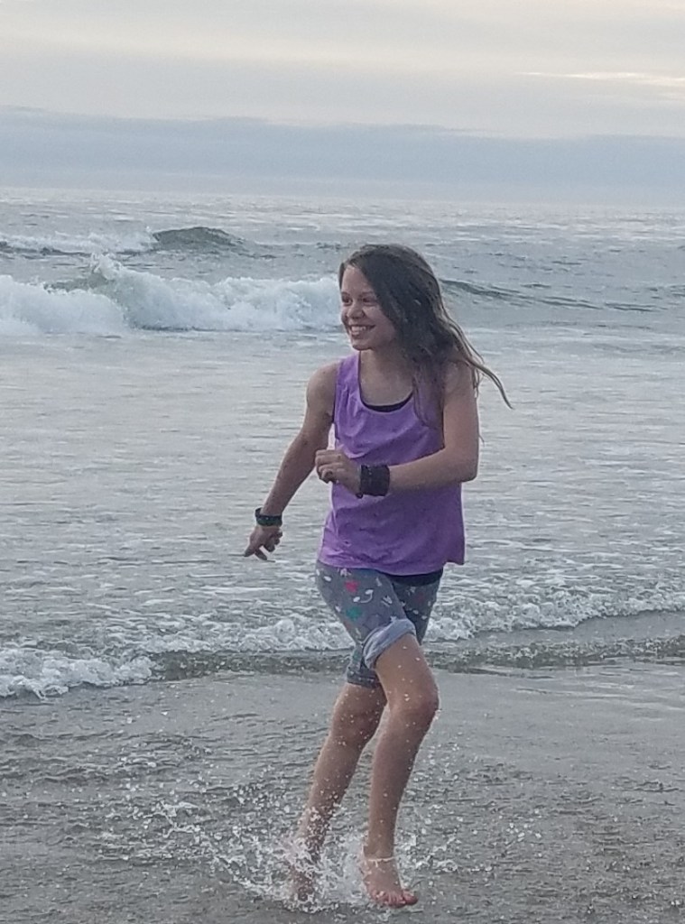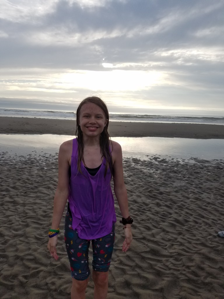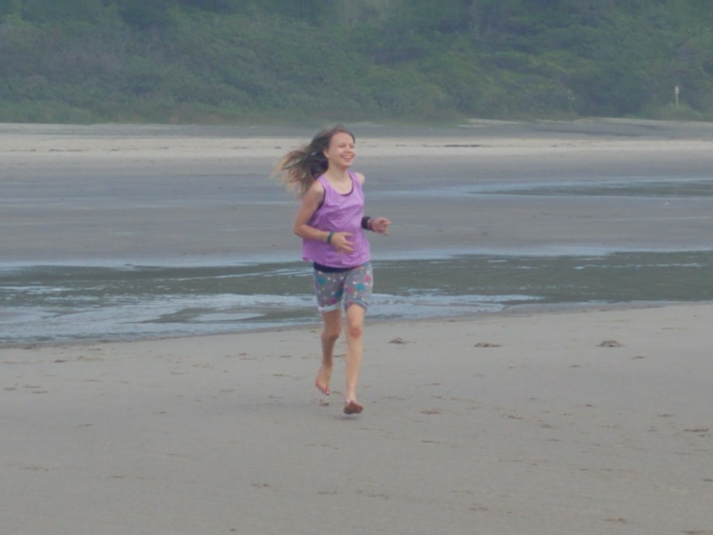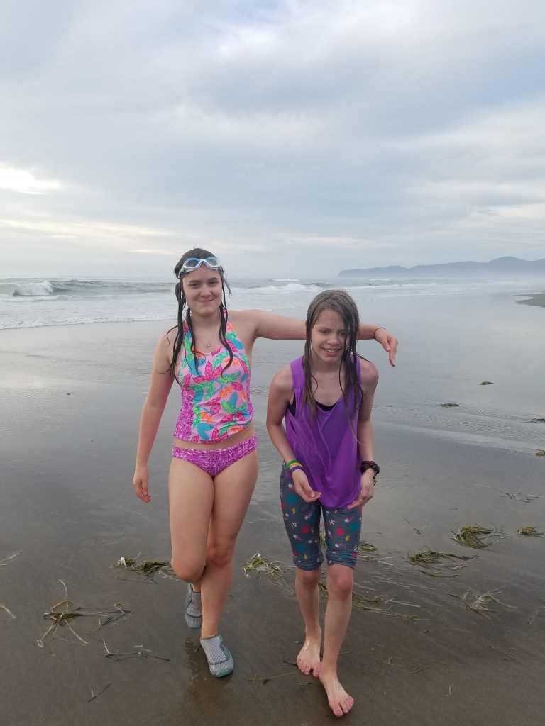 When we arrived at the Thousand Trails campground, we took our few minutes to set up camp, threw together a picnic dinner and headed over the highway to our first steps in Oregon sand. Oh, how we love the beach! I ran with the kids straight for the water, but with more experience than enthusiasm, I stayed dry north of my ankles. The kids dashed in and out, and Kyla just dove straight into the waves, as a powered glider did tricks for us to my enthusiastic waving.