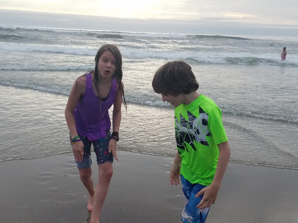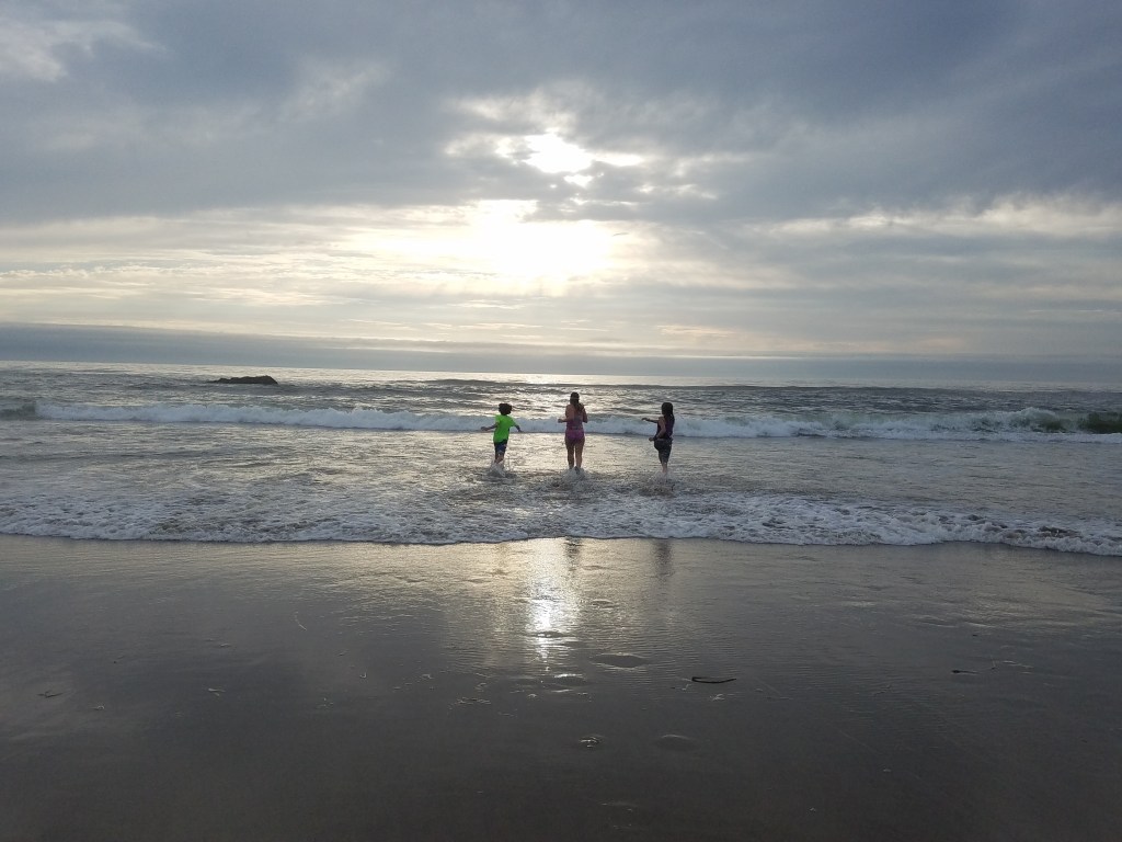 After saying good-bye to Brian and Sandi and their girls, we were able to meet old friends at George Fox University, where all the kids were able to run around outside and play on trails in and in cool stream. Ice cream o’clock found us walking to a local book-and-ice cream store before we had to say our goodbyes. The drive out to Pacific City is so beautiful—as gorgeous as home is, nestled between the Olympics and the Cascades, western and coastal Oregon is special.