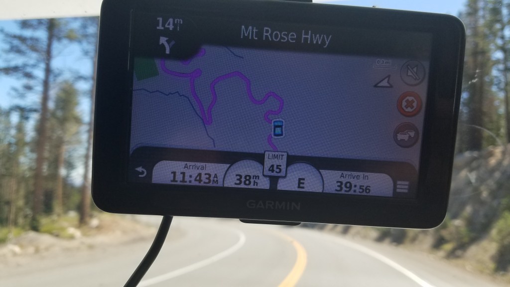 Dwayne will tell you the hair-raising ordeal of the climb to Mount Rose Summit. A quick search after the fact states that “[t]he 8,911 ft-high pass is traversed by State Route 431, which is the highest point of the highway and the highest mountain pass open year-round in the Sierra Nevada.” I would add an editorial that we saw almost no other RVs on the way, and we figured out why.