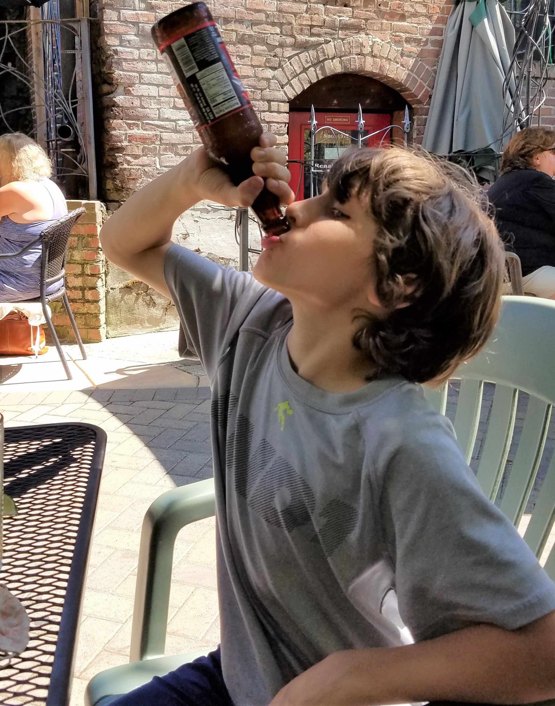 This had been a great enough day already, and hungry kids were beginning to drag when we found ourselves stumbling from park into town, where we found creekside dining along a walkable alley that can only be described as European. Dwayne and I could not have designed a better date location, and we plied the kids with mocktails and cribbage while we acknowledged our good fortune to find such a spot on such a day. Fully drugged on European dining, we made it a very long and pleasurable lunch, but American-style, filled the last nooks and crannies with dessert.