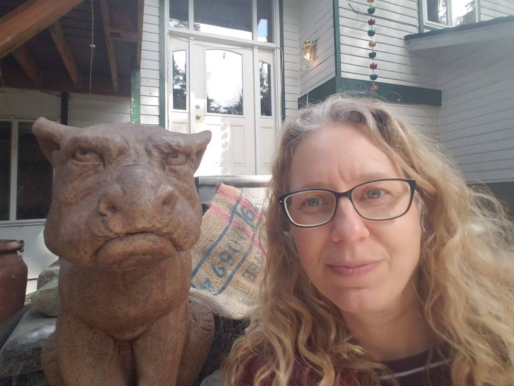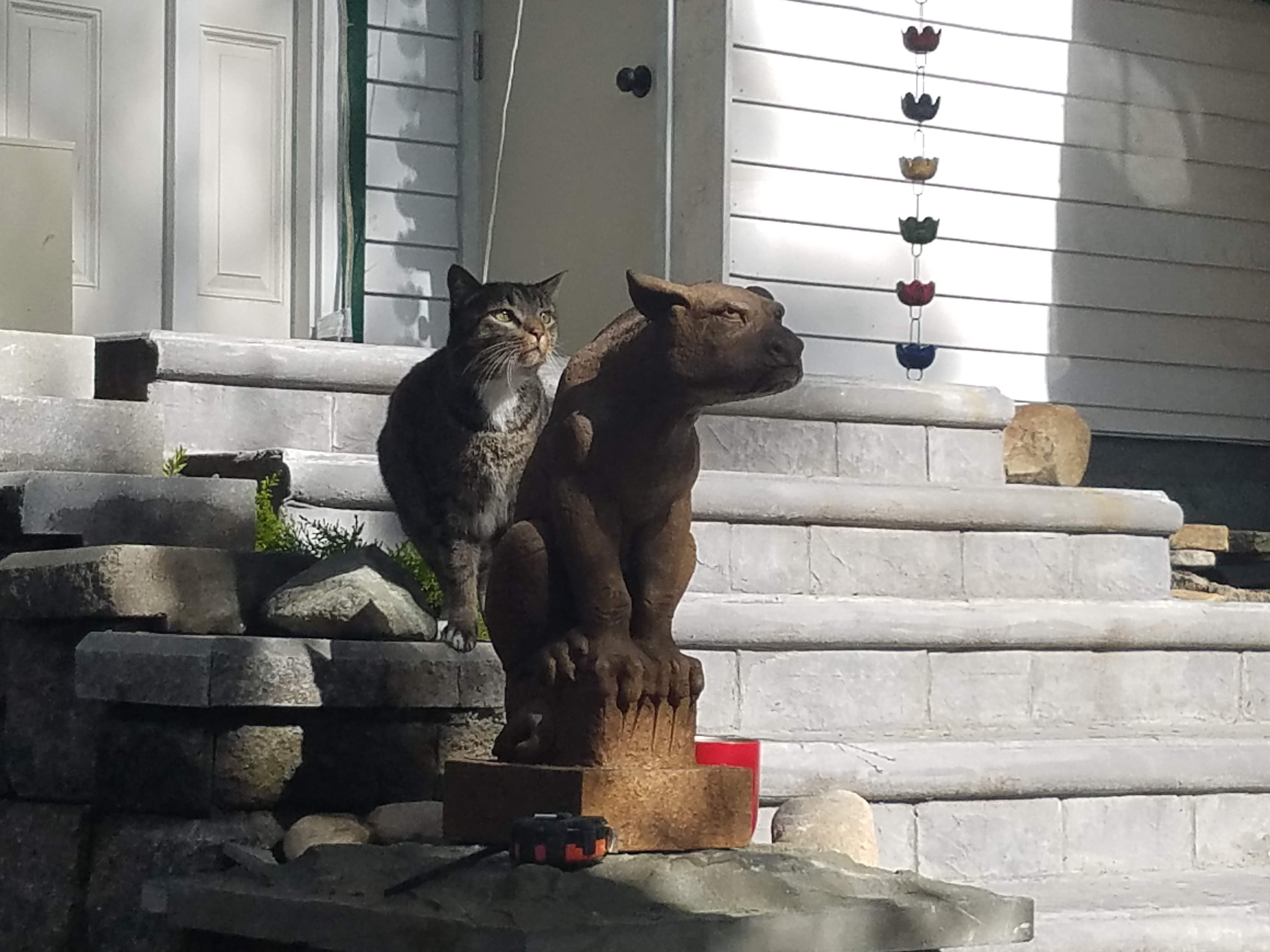 Both Dwayne and I crushed on Ernie the Grumpy Gargoyle when we first laid eyes on him earlier this month. I brought him home yesterday to the newly completed pedestal.