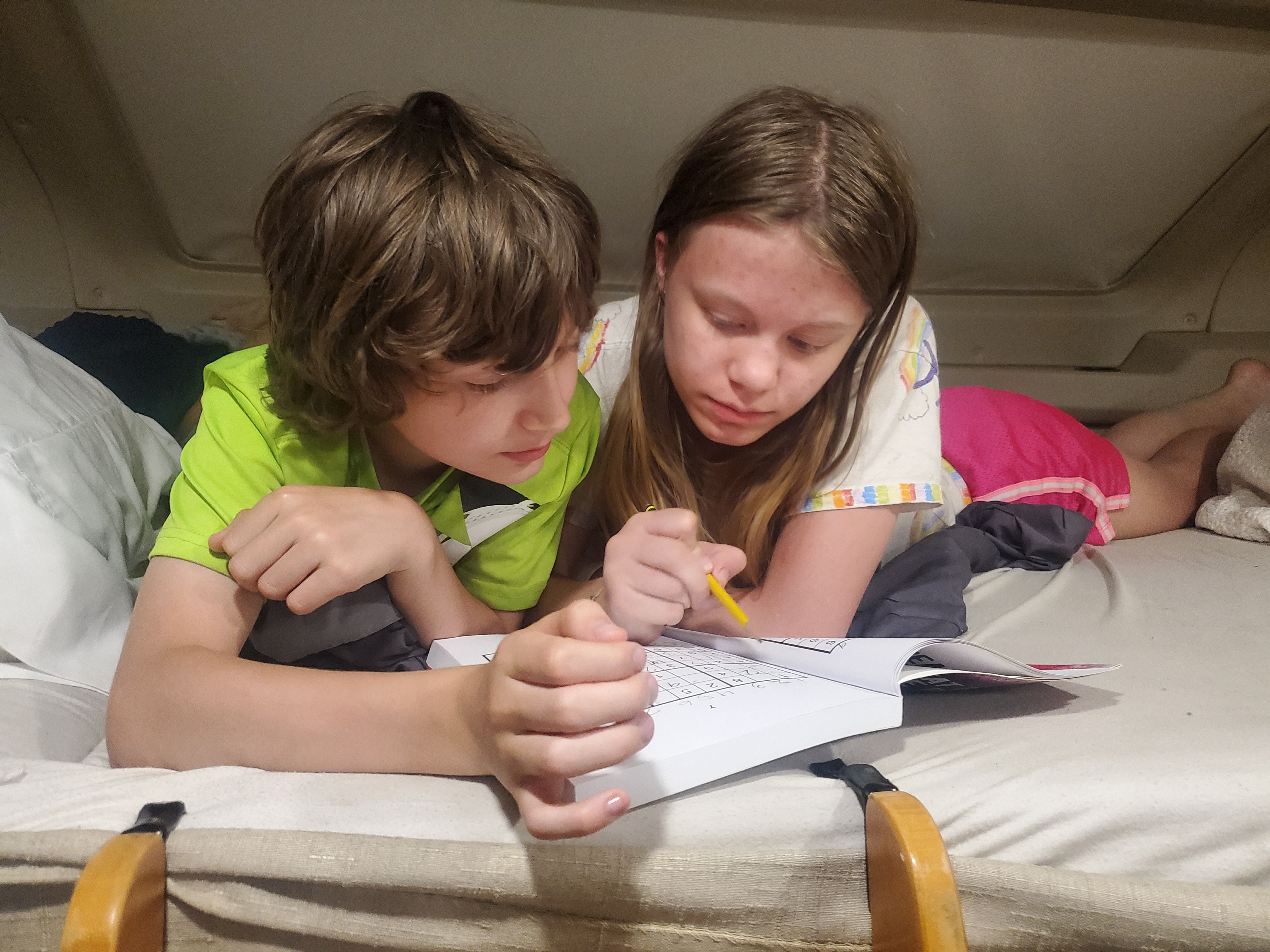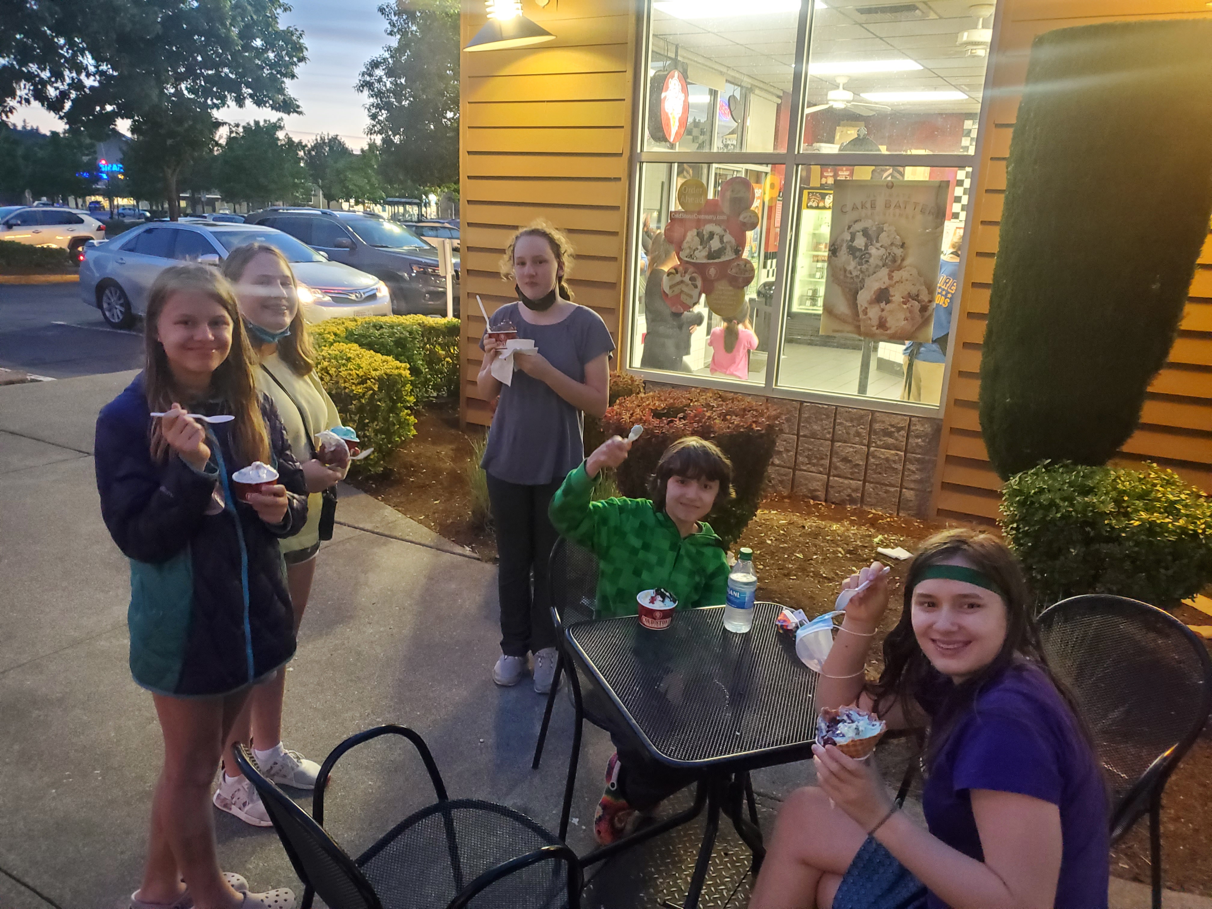 School ended on Friday, and on Saturday we packed up and headed east. We made a 3 hour trip into 5 by stopping for lunch and a card game out in the sun, then topping up at a fudge shop.