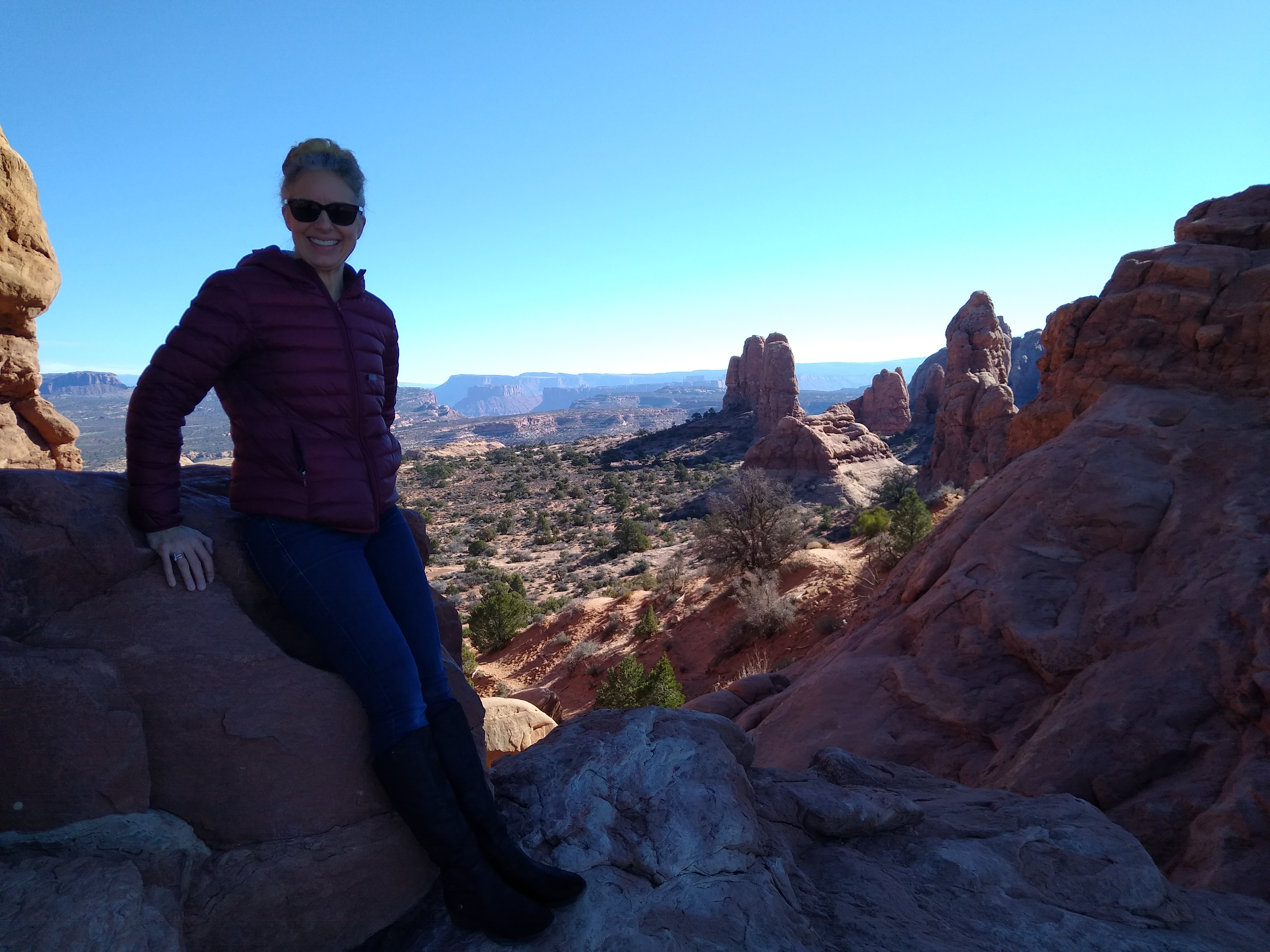 It amused me to land in SLC and have my picture taken in front of a large liquor display. We didn’t spend long here before driving south, four hours to Moab, road tripping with a good audible book and lovely scenery.