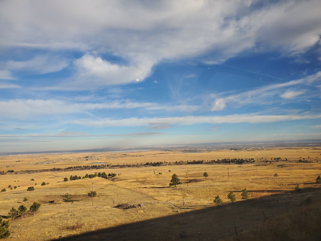 The next morning, we had breakfast back on board the train before a full day of climbing up and through the Rockies. I had always wanted to visit Colorado, and this more than whetted my appetite! I finally got to see a herd of tall, skinny cows to satisfy my 2020 bucket list, and there were plenty of regal bald eagles. The sky was blue, blue, blue, and Dwayne’s wariness about November weather on a scenic trip waned.