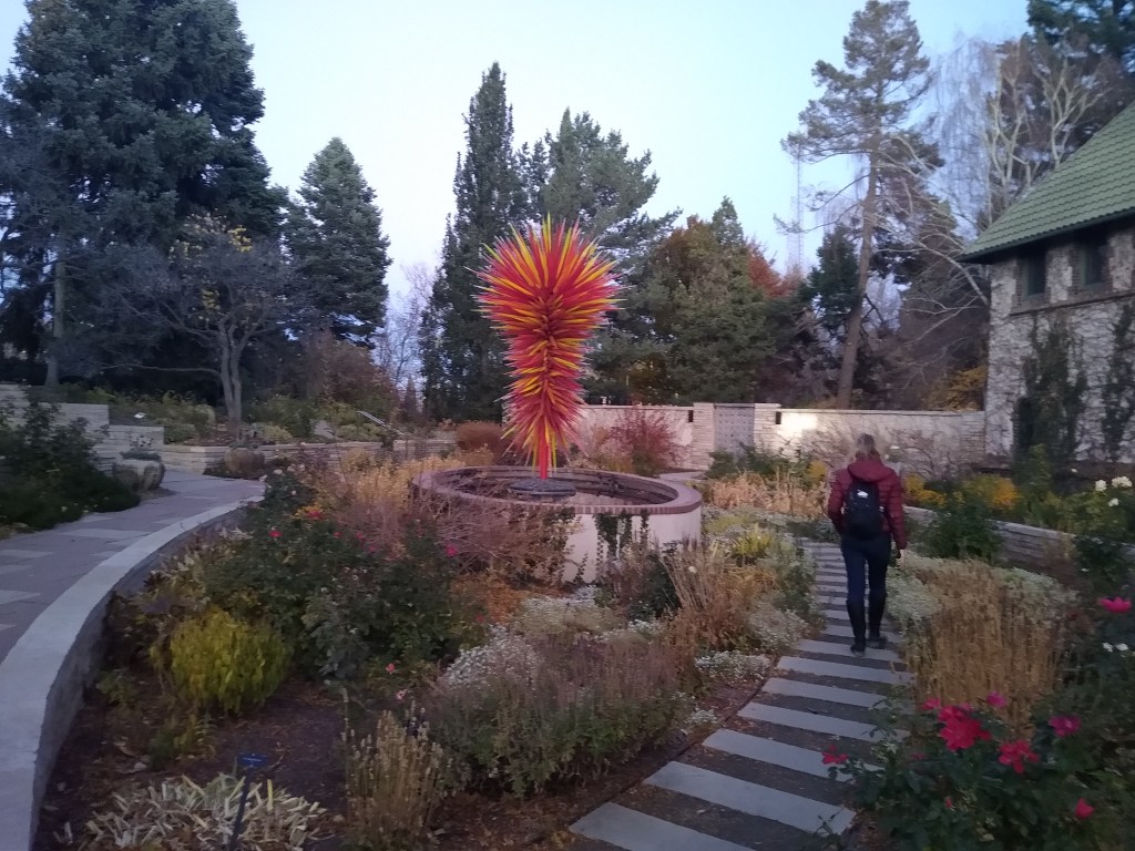 I woke up feeling great on Saturday, and we set off with money, water, our deck of cards, and fully juiced phones, ready for adventure! Denver is very walkable, and we meandered from Rally Hotel, to the capitol, on to the Unsinkable Molly Brown’s house and museum. That was quite a distance, so we downloaded the Lime app, and took scooters around for a look at the museum and capitol hill district. We walked further away from downtown to another park and finally got ourselves into Denver Botanical Gardens.