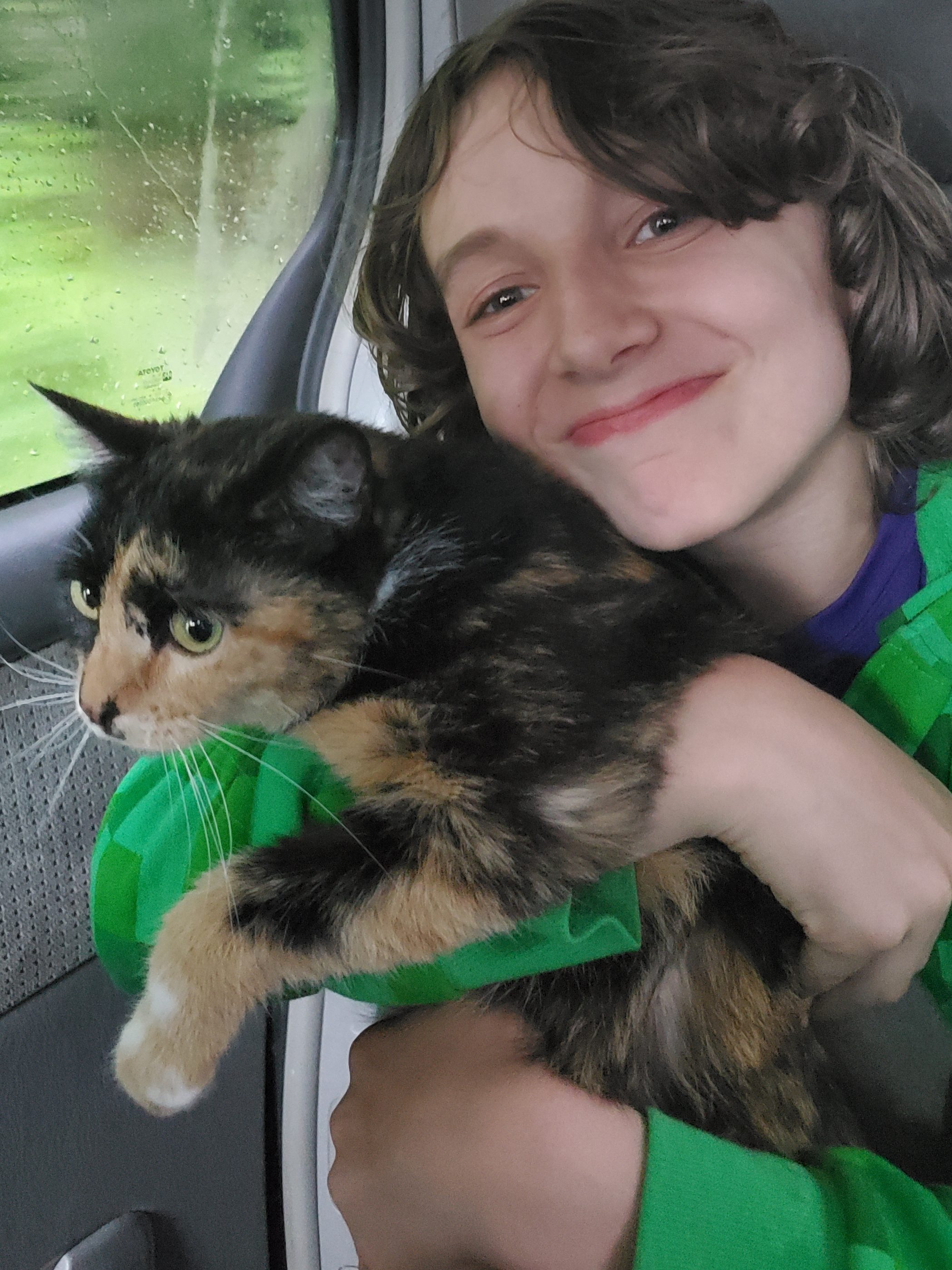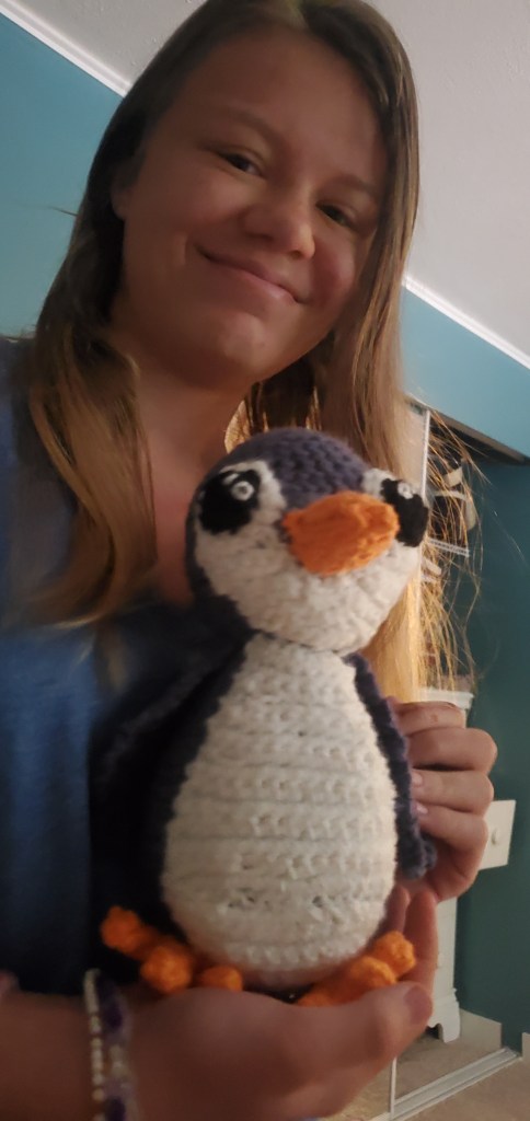 Piper has truly enjoyed less people and more yarn in her life. I’m currently writing this while Piper is making a slipper model out of my foot using plastic wrap and duct tape. Crafting in the age of YouTube and TikTok is certainly its own entertainment. Thirteen-year-old Piper is a full-blown crochet-master and creates many of her own patterns. Siblings, friends, and cousins have all been recipients of her creations. She’s also proven to be a henna artist—summer meant intricate patterns over her hands and feet. Advanced art is her favorite class in 8th grade, and she frequently reminds the family how much more she likes her cat than any of us. But at least she bakes us many, many yummy treats, particularly when Dwayne and I are trying to cut back on sweets.