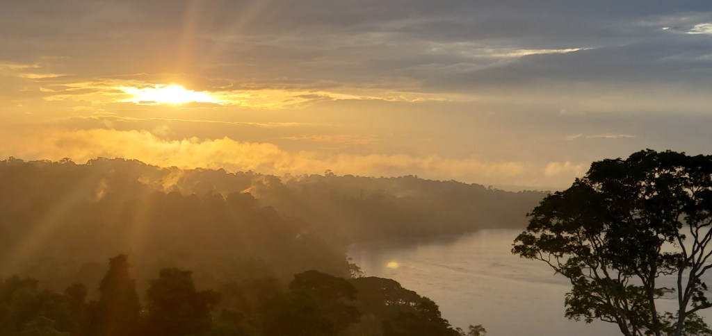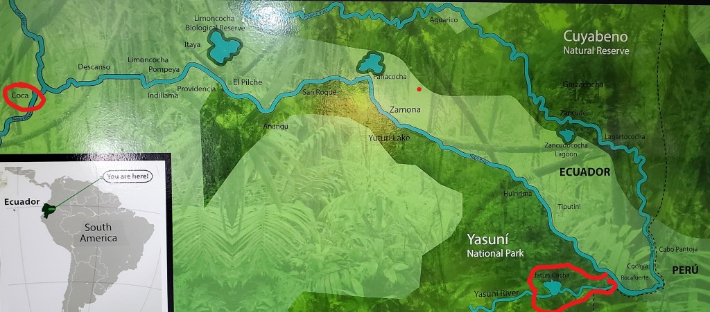 Our first adventure in Ecuador (not counting the worst traveling experience we’ve ever had just getting to South America) was exploring the Ecuadorian Amazon Basin along the Napo River, a tributary of the Amazon River. We launched from Coca, and between ship and motorized boat, made it to the Yasuni River and back again. Fun fact: Only 2% of the Amazon Basin is within Ecuador, but it still takes up a chunk of this country.