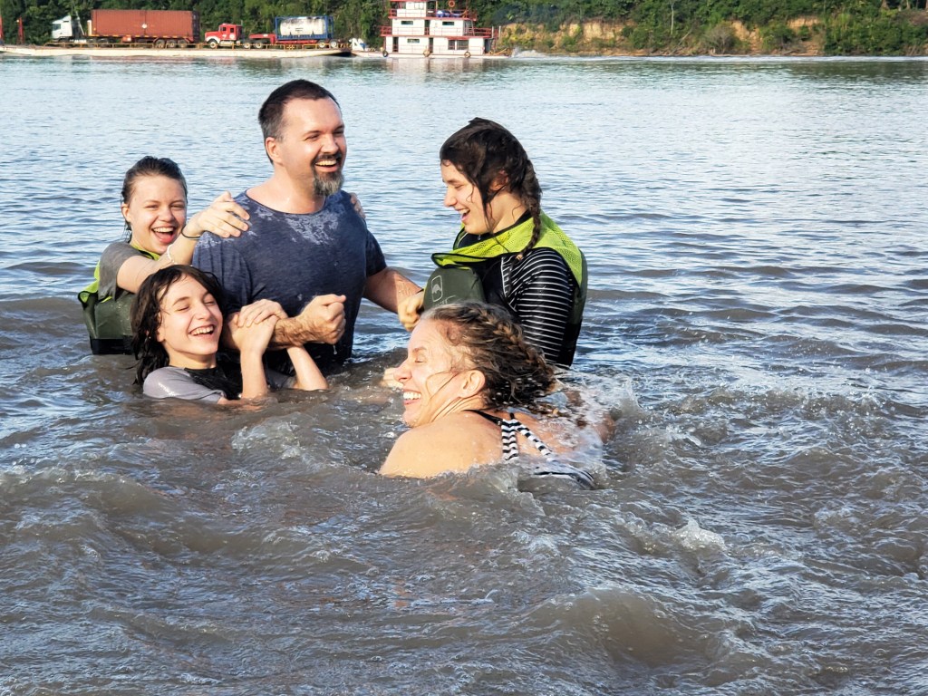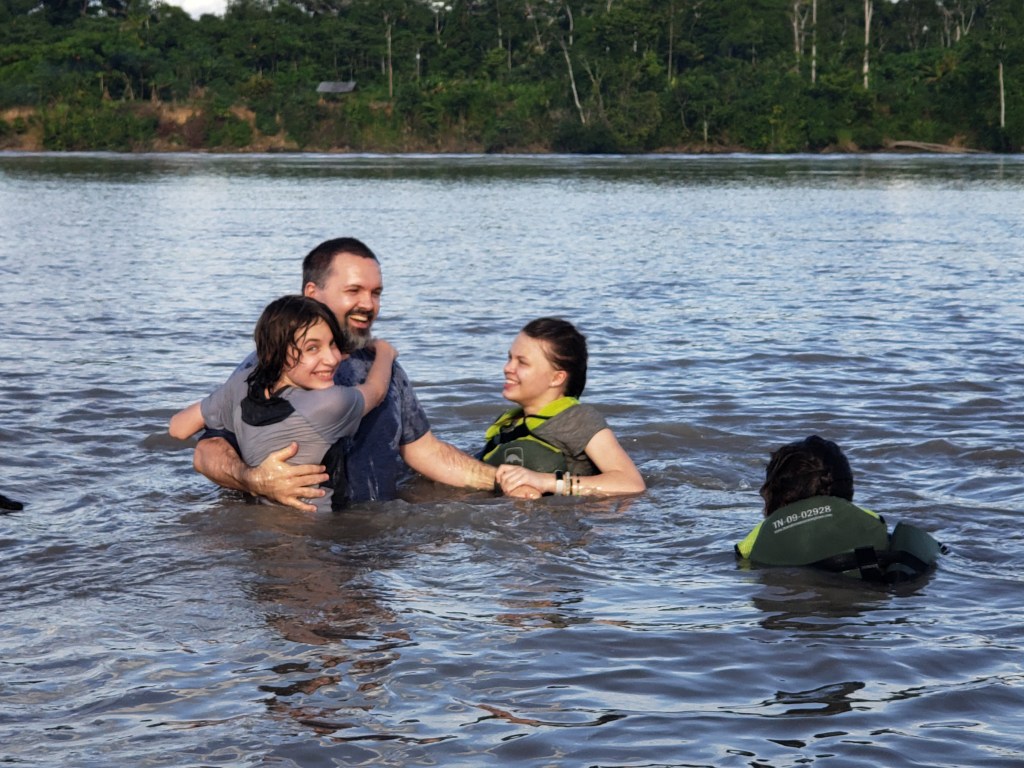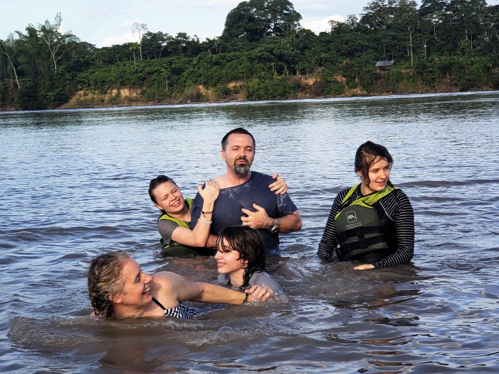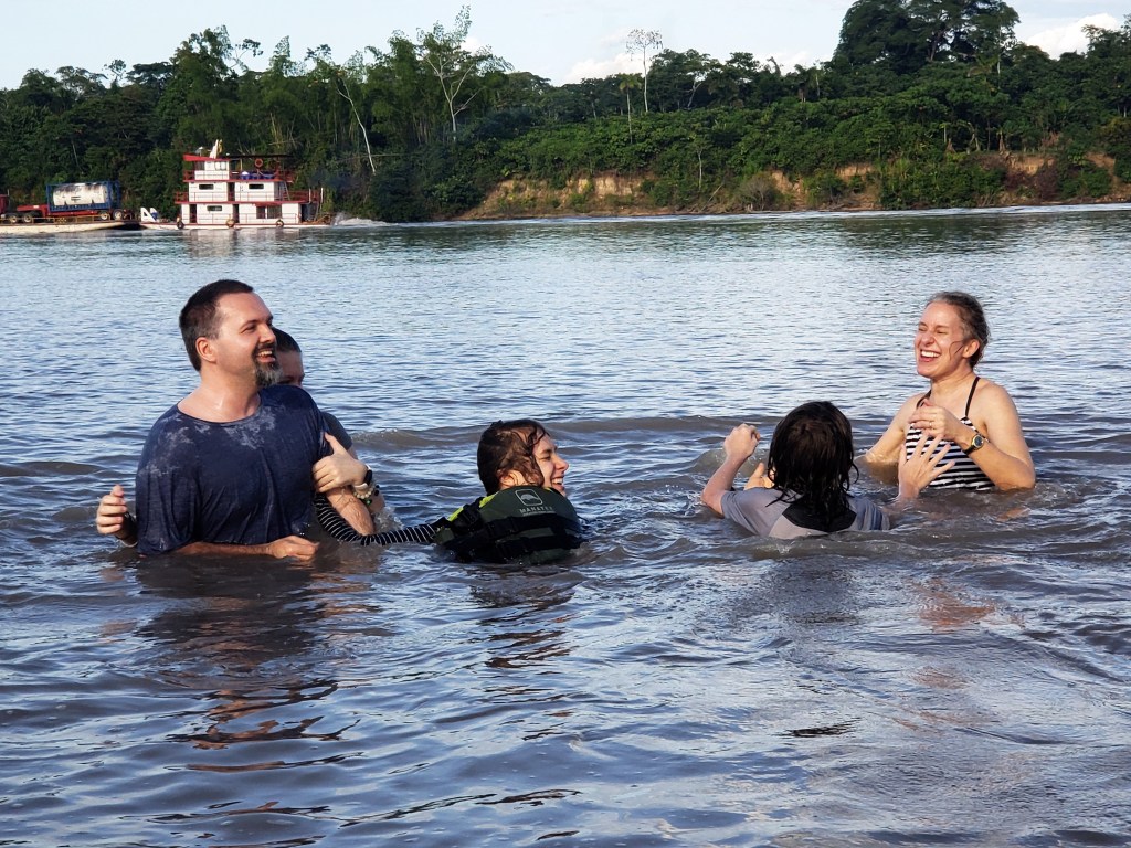 A lifetime family highlight was swimming in the Amazon together. Piper, who had firmly insisted she would never swim in a river where piranhas swim, was second only to Wes in jumping in. We were in a shallow area with a strong current—and allegedly far, far away from the anaconda resting marshes we had explored the day before.