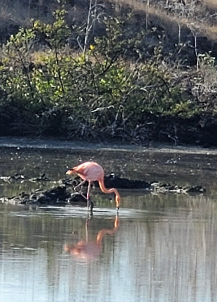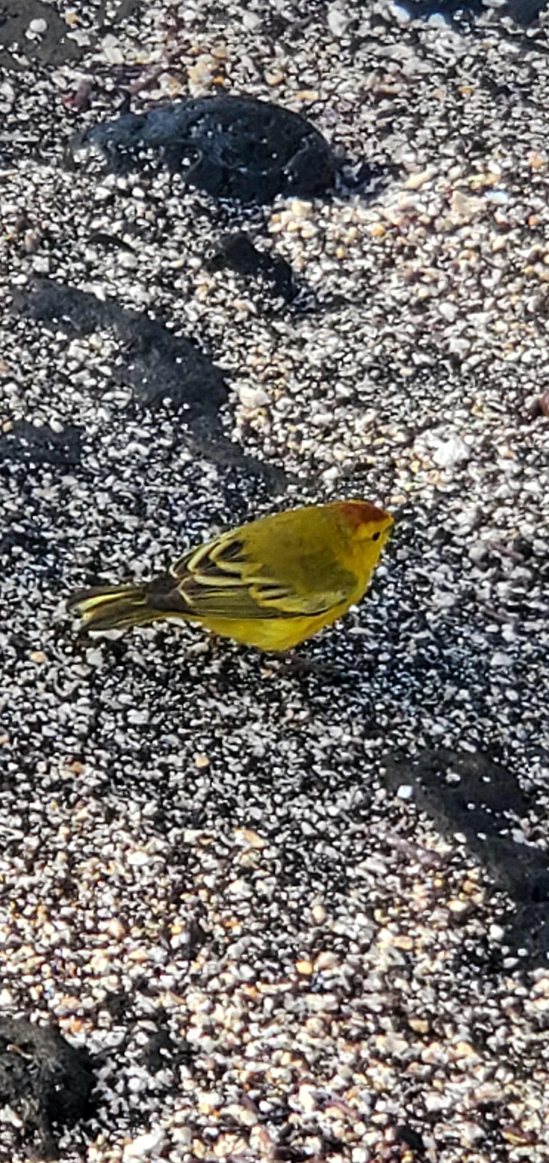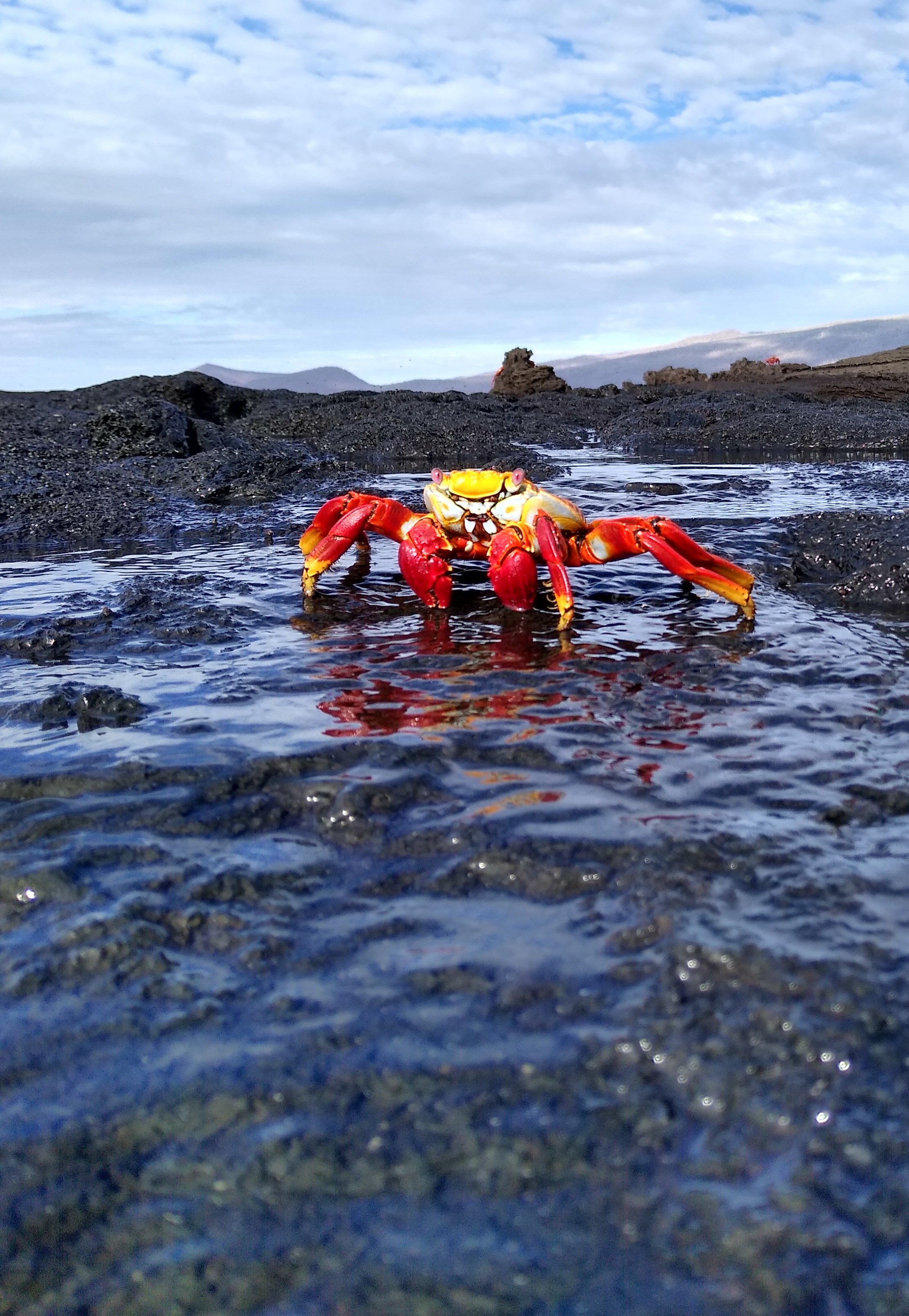 The Galapagos is a study of contrasts to the Amazon. Where dipping a toe in the Napo meant that not only could you no longer see your toe, it may not even be attached anymore, the Galapagos waters were clear enough to see rays, turtles and sharks from the pangas (motorized rafts). In the Amazon, most of the animals we saw were slightly moving blurs that our guides swore was a monkey or bird. Just getting off the bus on the Galapagos, this guy greeted us.