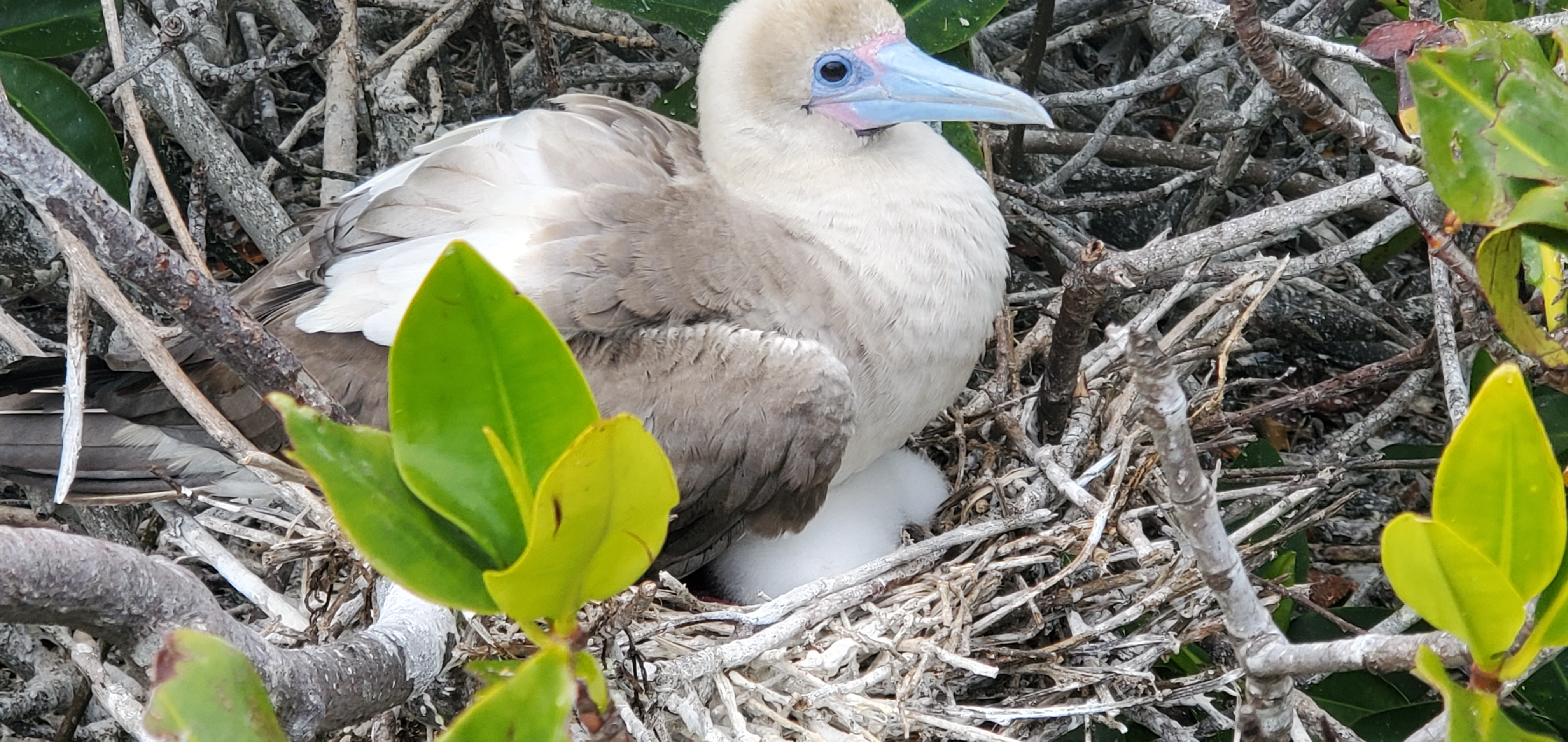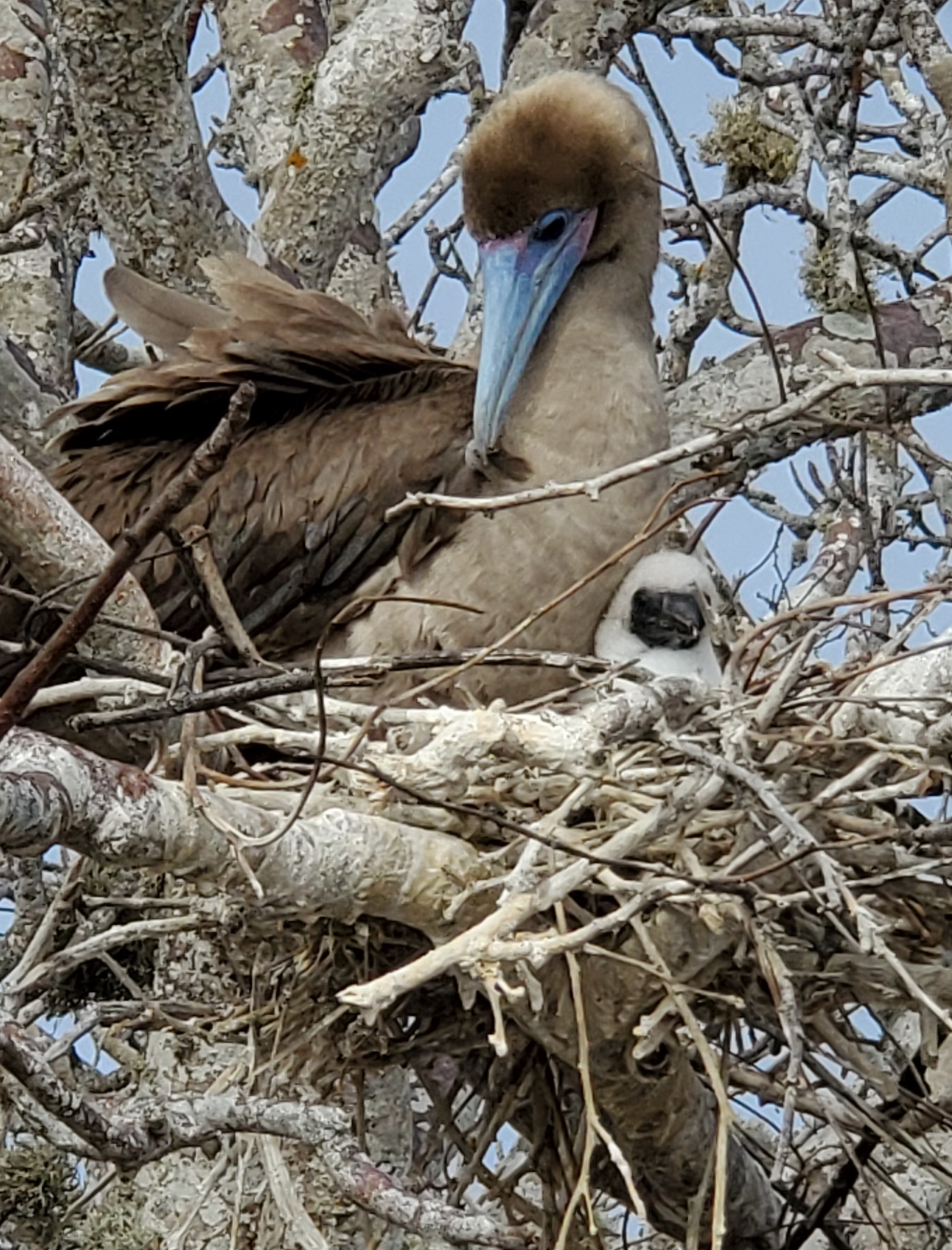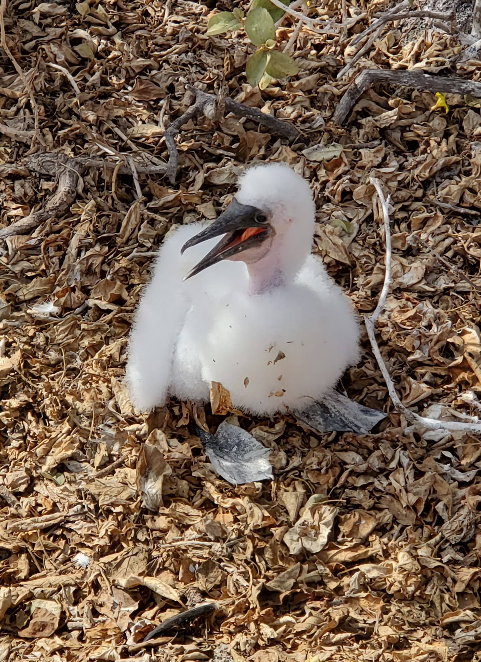 We went from land reptiles to sea birds. We got to see the famous blue-footed boobies, then heaps of red-footed boobies, nasca boobies, frigates, and then more and more and more birds, possibly to bird ad naseum. But Piper loved the fluffy chicks that were as big as their parents. One of the more educational parts was seeing a feeding/mauling of a parent who made it back with a gut full of fish.