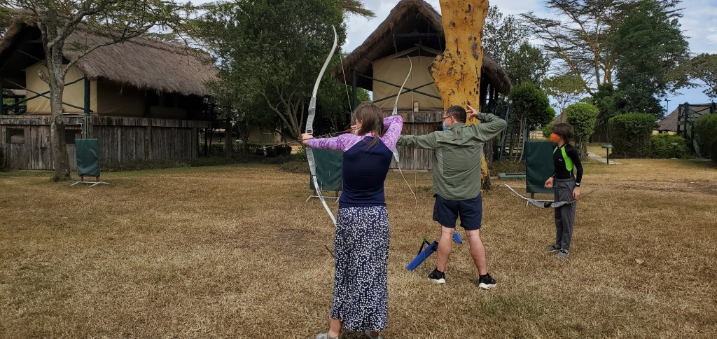 There was a brief attempt to go swimming, but it wasn’t a hot enough afternoon to enjoy an unheated pool, so the kids found archary instead.