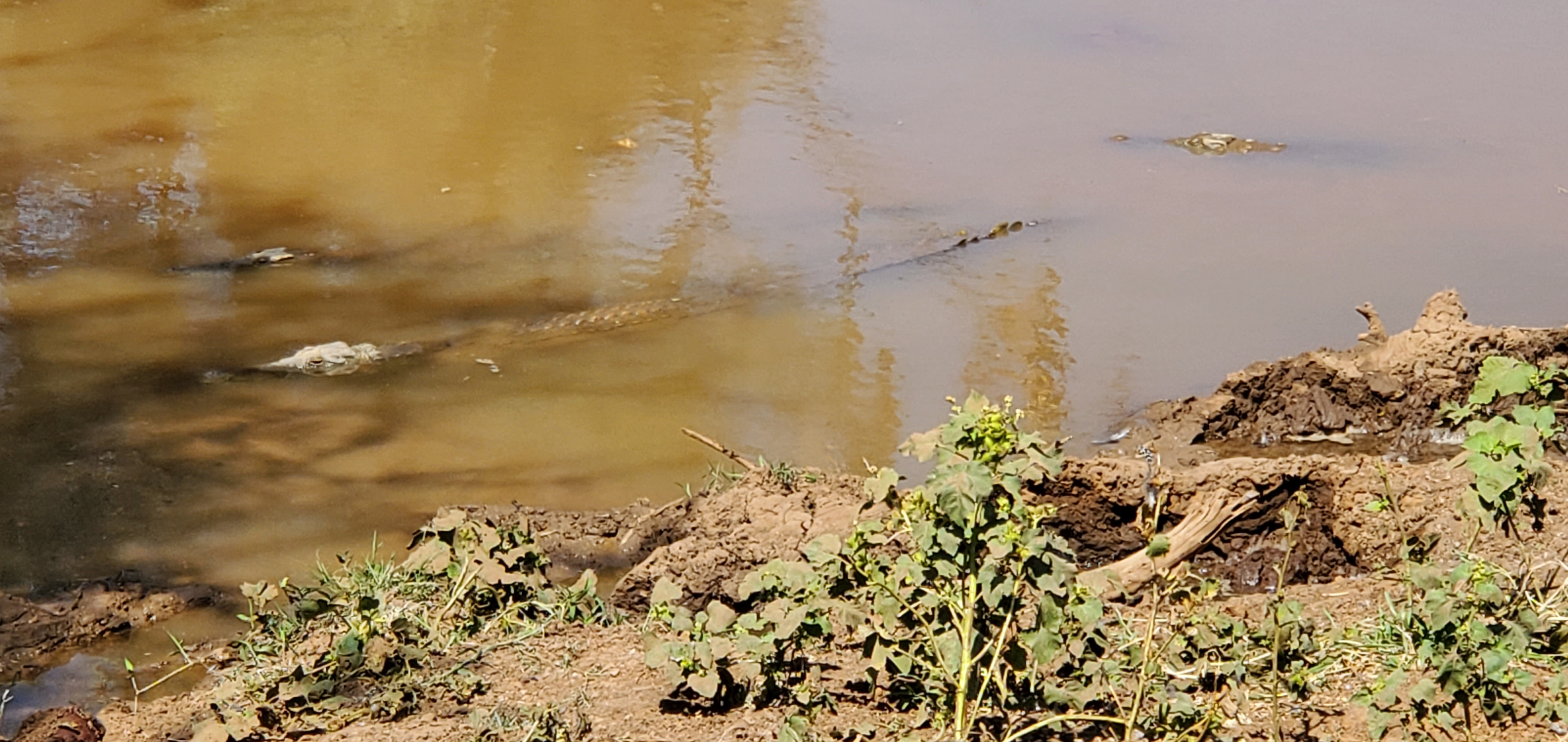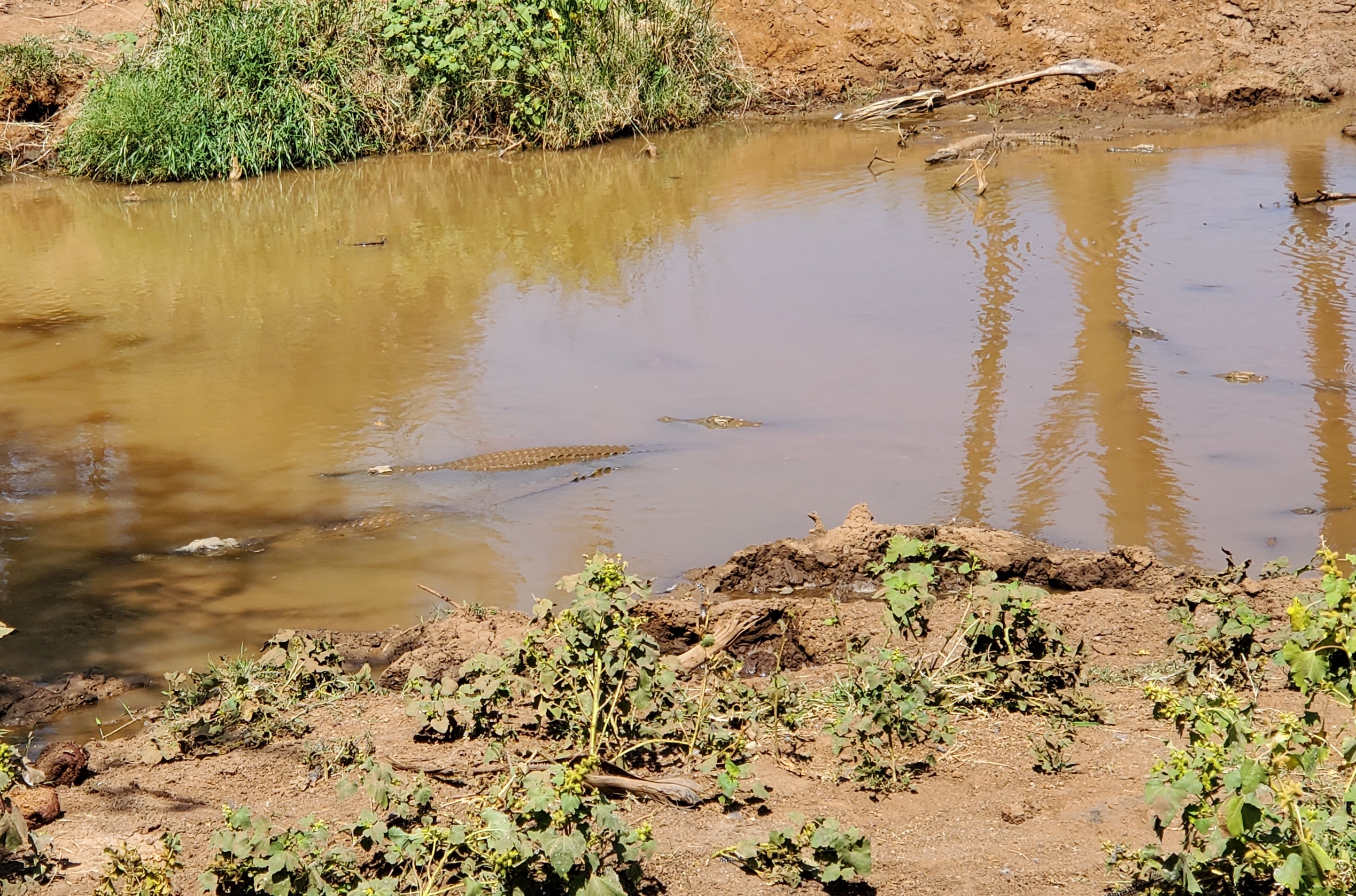 As dry as Samburu was, there were underfed rivers that made elephant viewing more fun (here and here) and gave us our first glimpse of crocodiles…and the guineafowl feathers left behind. The rule is, if it looks like a stick and acts like a stick…it’s not a stick.