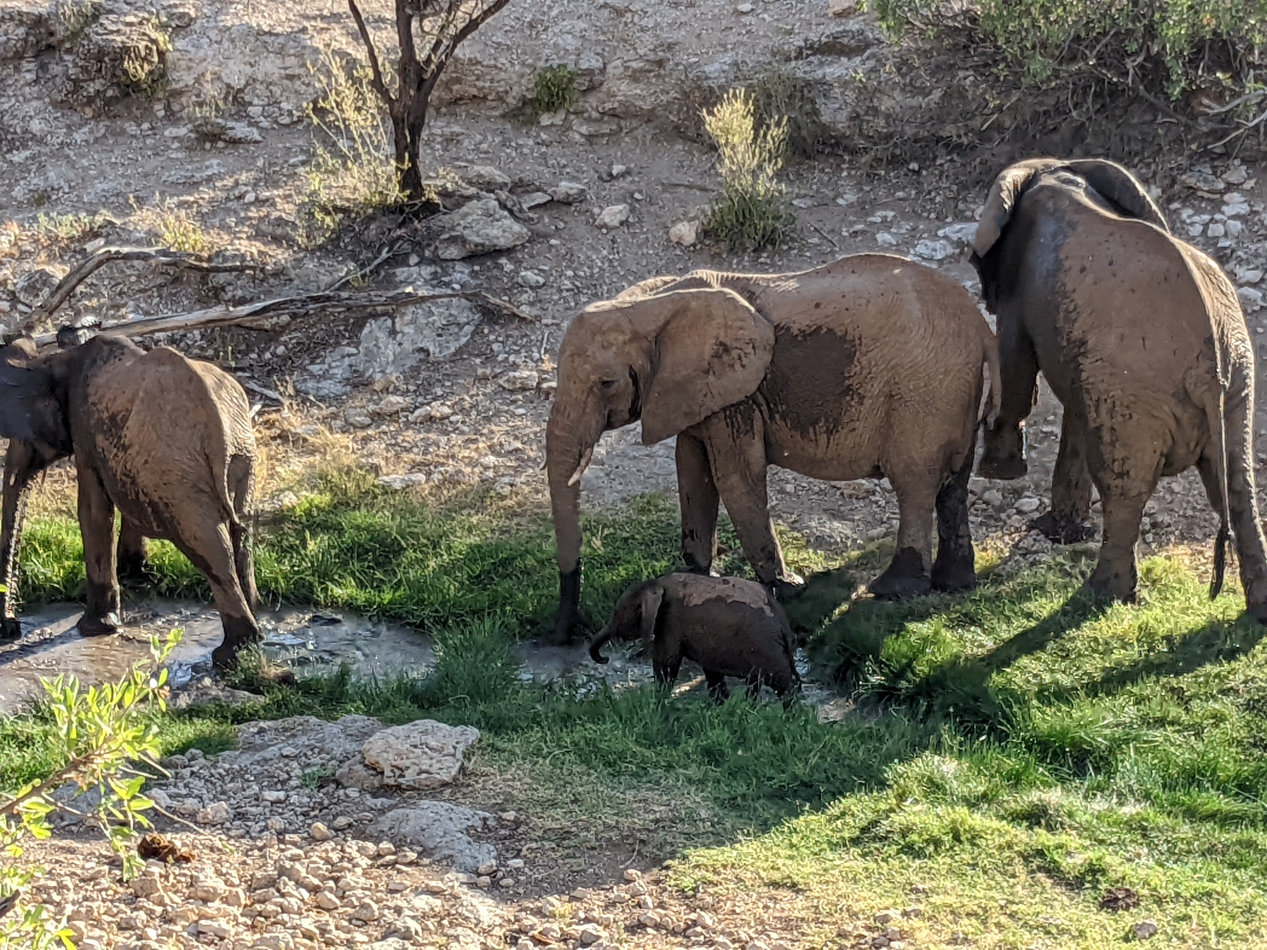 We did see these five animals, but there were plenty of other reasons to enjoy this spot. First, it was lousy with elephants*. We ran into more elephants here than even rhinos at Ol Pejeta. More groups, bigger groups, single lines that blocked roads– what a feeling to not see other animals because an elephant is blocking your view!